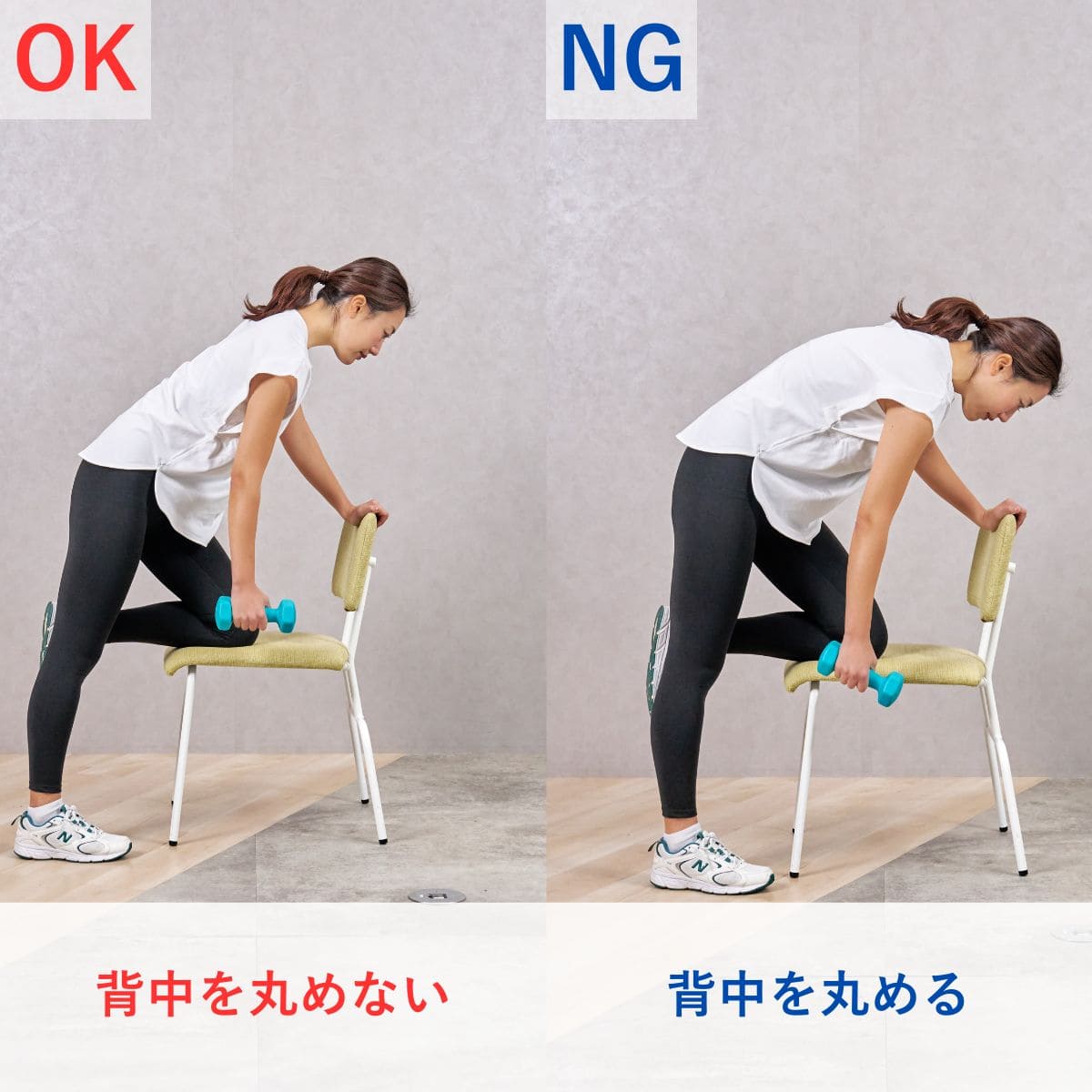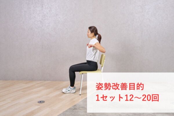 姿勢改善が目的の場合は、1セット12〜20回と、やや軽めの負荷で筋肉を使い続けられる回数がおすすめ。