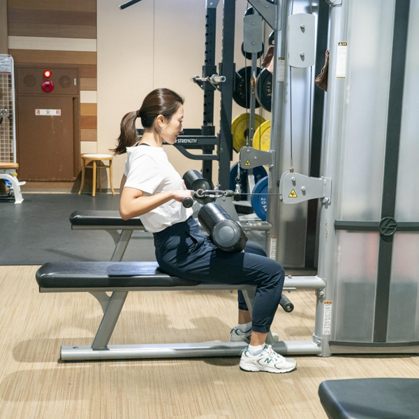 メリハリのある身体作りが目的の場合は、1セット10〜12回前後の中強度で、正しい部位に効かせることが大切。