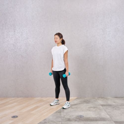 ひざを伸ばし切らず、常に筋肉にテンションをかけた状態で行いましょう。