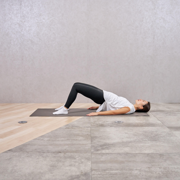 - 仰向けに寝て、両ひざを90度に曲げる