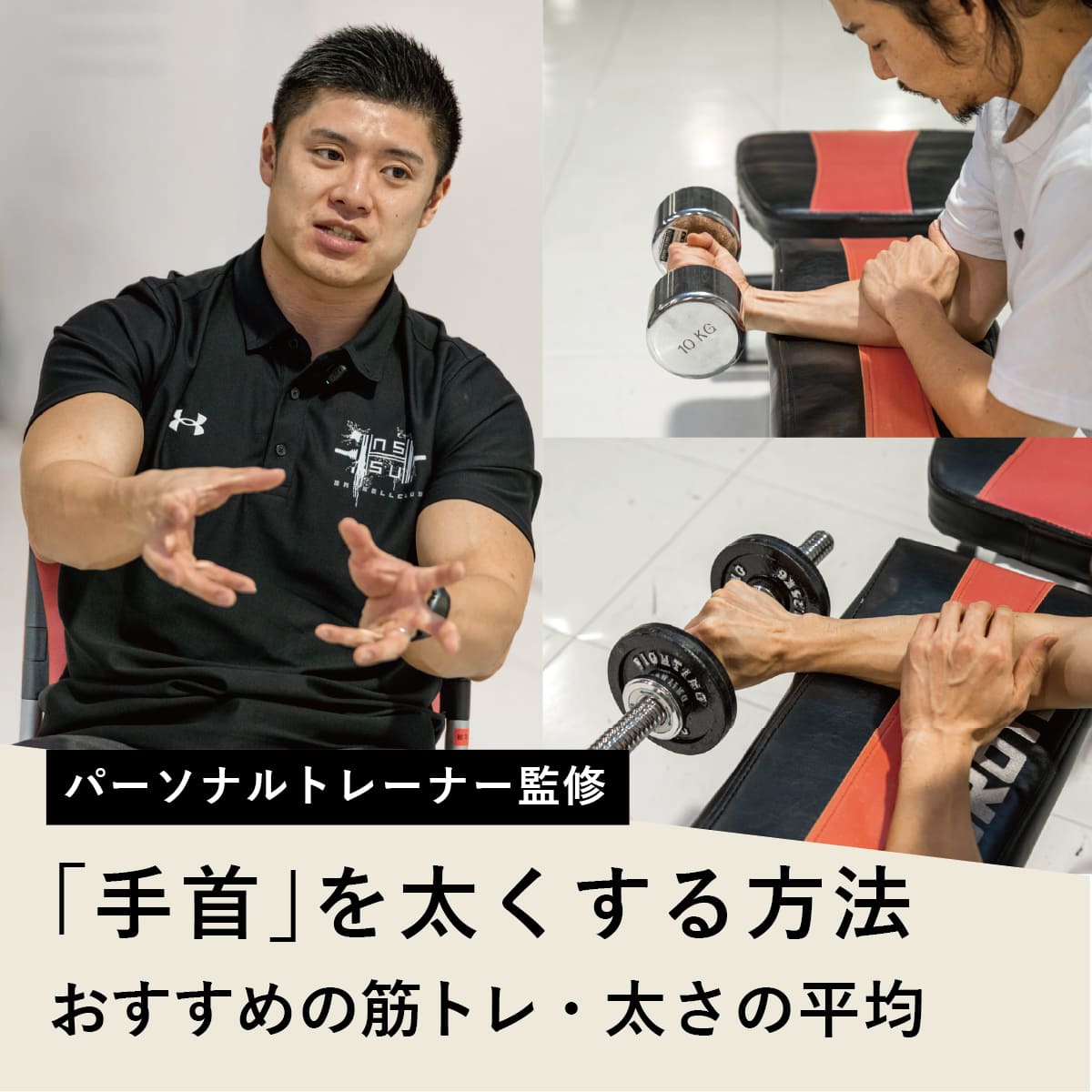 手首は関節まわりの筋肉が小さく、太さは主に骨格や腱の太さによって決まるため、数値そのものには生まれつきの個人差が大きい。一方で、見た目の印象はトレーニングによって変えられる。前腕を構成する筋肉を鍛え、手首からひじにかけて厚みを出すことで「手首が太い」という印象をつくることもできる。