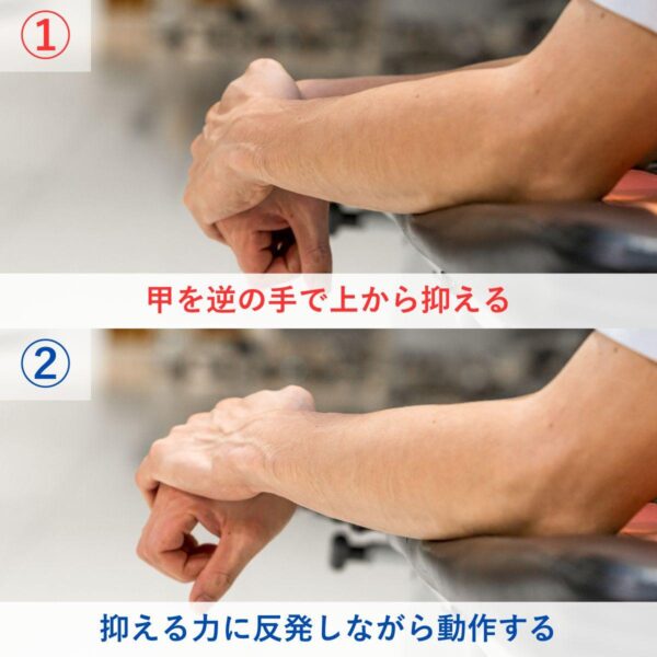 - 手首を外側にひねる(回外)動作と、内側にひねる(回内)動作を繰り返す