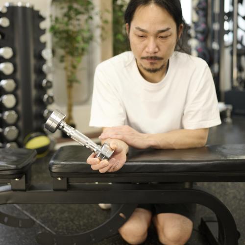 ラジアルフレクションもリスト・スピネーションと同様に、片方のプレートを外せるダンベルでおこなうのがおすすめです。重さを上げると動作が雑になりやすいため、コントロールできる範囲で、ていねいに動かすほうが前腕の奥まで使えていると感じました。
