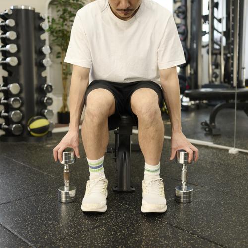 ダンベルホールドは、動作をともなわずに握力を鍛えられるシンプルな種目です。一定時間握り続けることで、前腕の屈筋群・伸筋群の両方に持続的な負荷がかかり、「保持する力」を高めやすくなります。
