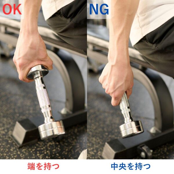 ダンベルを握って静止するだけの動作ですが、想像以上に前腕全体が張ってくる感覚がありました。しかし、ダンベルが滑りやすいので注意した方がよさそうです。