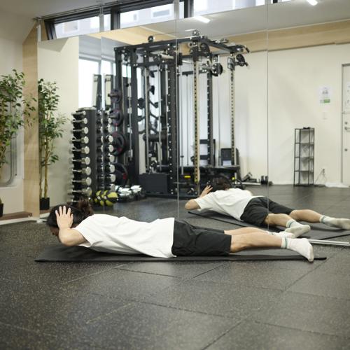 背筋のトレーニングで最も難しいのは、自分の目で見えないこと。そのため、どうしても腕の力で無理やり体を持ち上げようとしてしまいがち。以下の3点を意識しながらトレーニングすることが大切。