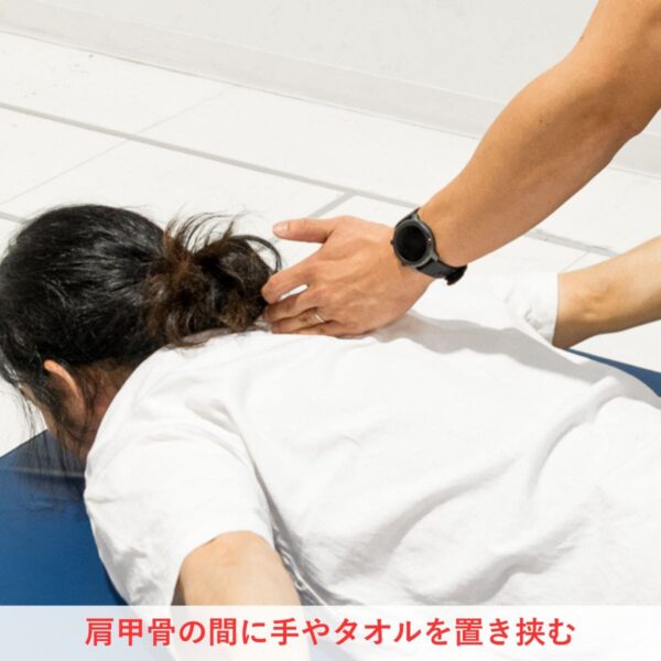 肩甲骨を寄せる感覚をつかむまでに、少し時間がかかりました。最初は背中に手をおいてもらい練習することで、肩甲骨を寄せる意識をつかみやすくなります。
