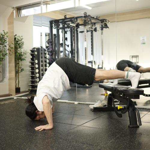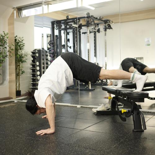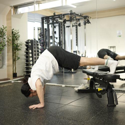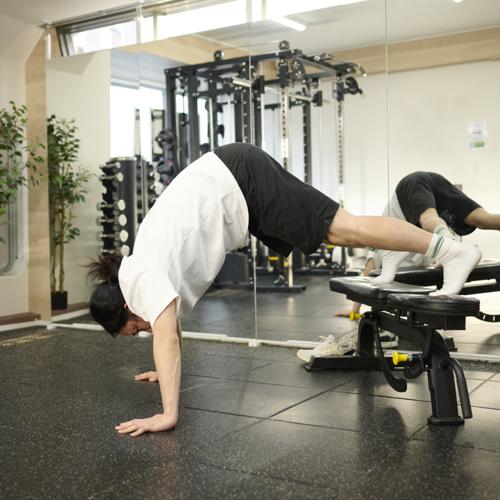 足の位置を変えるだけで、体にかかる負荷が大きく変わると感じました。足を床に置いた状態では動作をコントロールしやすく、フォーム確認に集中しやすかったです。一方で、ベンチに足をのせると肩まわりへの負荷が一気に増し、ひじの曲げ伸ばしを雑にすると姿勢が崩れやすくなりました。