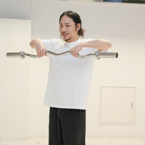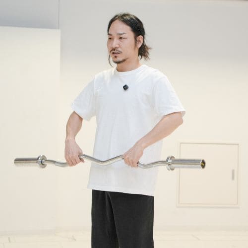 検証した中では、EZバーとケトルベルがとくにおすすめだと感じました。アップライトロウでは、手で引くのではなく、ひじから重量を持ち上げる意識が重要ですが、EZバーやケトルベルはその動きを作りやすかったです。