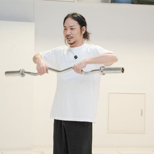 アップライトロウは、三角筋中部を中心に肩全体を使いやすい種目です。バーを引き上げる動作の中で、ひじの位置やスピードによって刺激が変わりやすいため、コントロールした動作が重要になります。勢いを使わずゆっくり引き上げることで、三角筋中部への負荷を逃がしにくくなります。