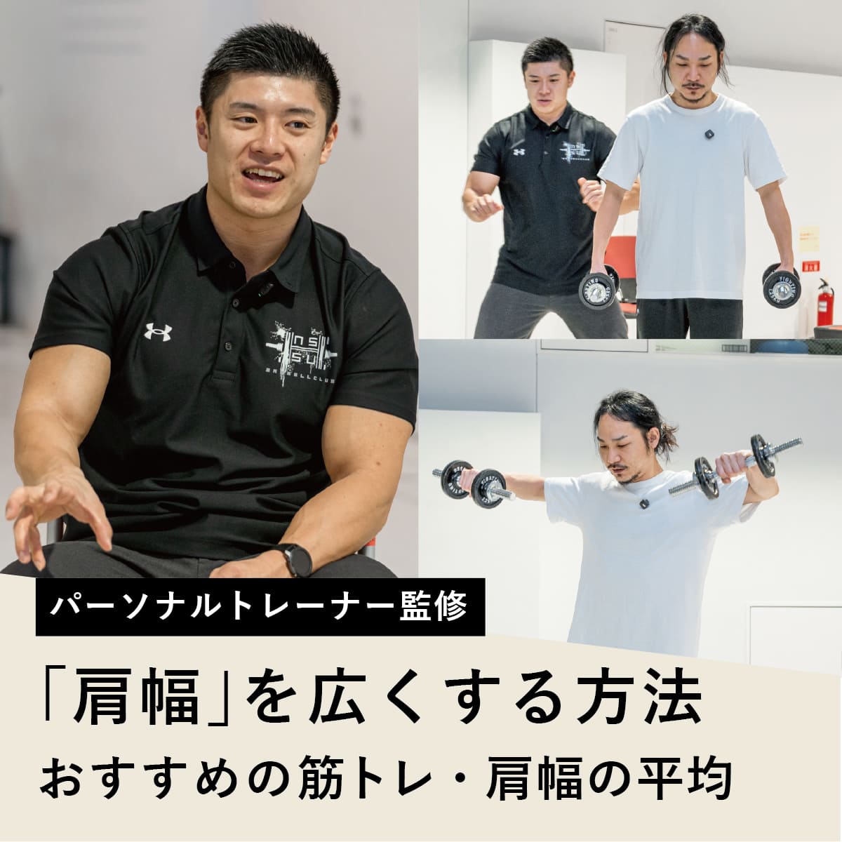 一方で、見た目の肩幅はトレーニングによって変えられる。三角筋中部を鍛えて肩の横に張り出しをつくり、広背筋を鍛えてメリハリを出すことで「肩幅が広い印象」をつくることができる。
