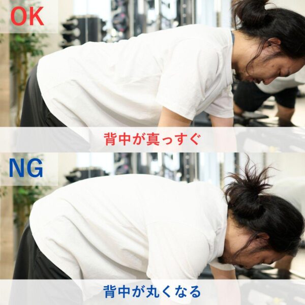 ワンハンドローは、姿勢の崩れがそのまま効きにくさにつながる種目です。背中を丸めず安定させることで、引く動作に集中しやすくなります。