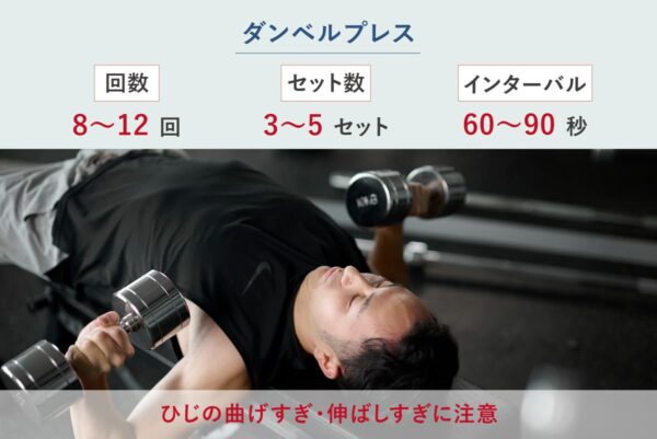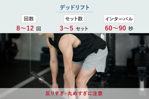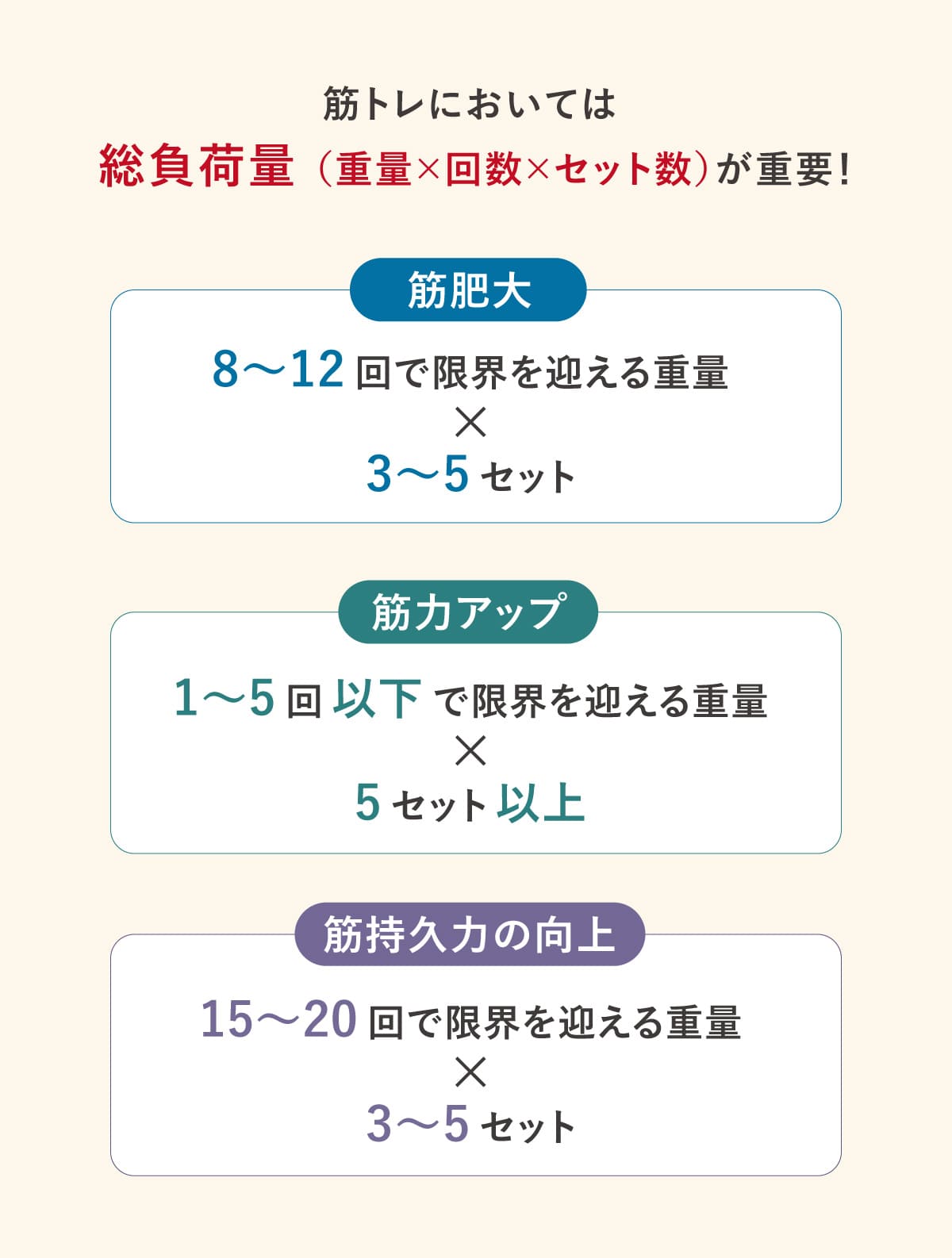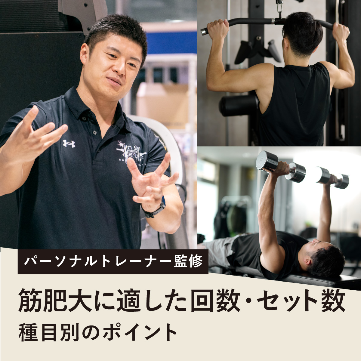 どの種目であっても、筋肥大を目的とする場合は8~12回×3~5セットが基本となる。