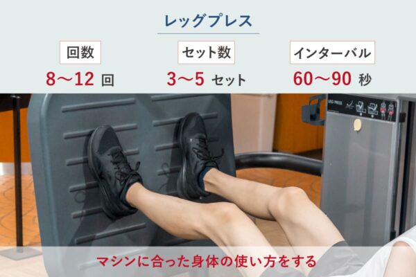マシンによって押す角度や下ろすときの軌道、シートの角度が違うので、同じレッグプレスという種目でも、マシンの違いによって全然違う動きになります。そのため、マシンに合った身体の使い方をすることが重要です。