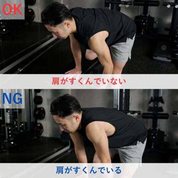 - 背中を丸めないようにして前傾姿勢を保つ