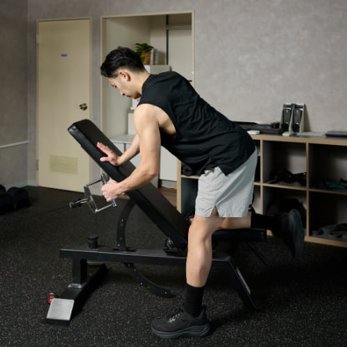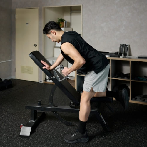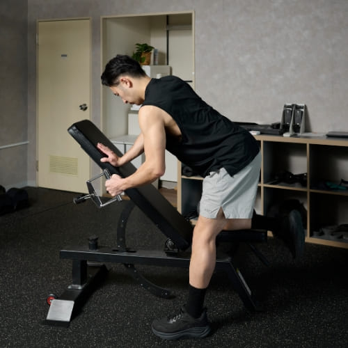 - インクラインベンチを45度程度に合わせる
