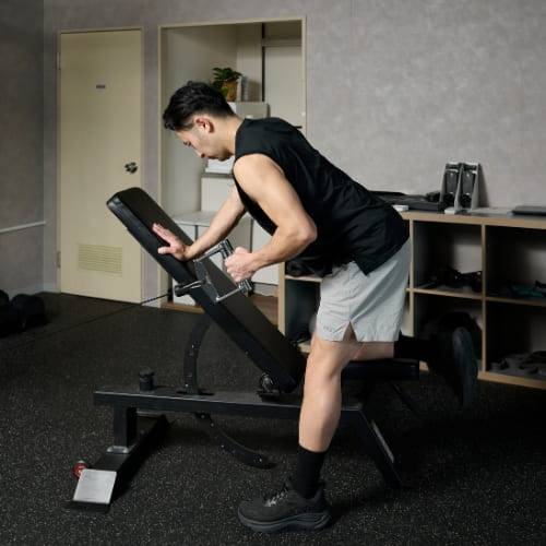 - 引き手を逆の手とひざをベンチにセットする