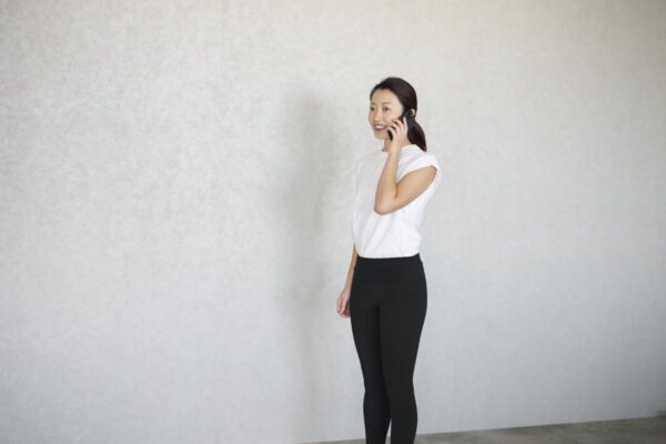 ▼立ちながら電話をする風景