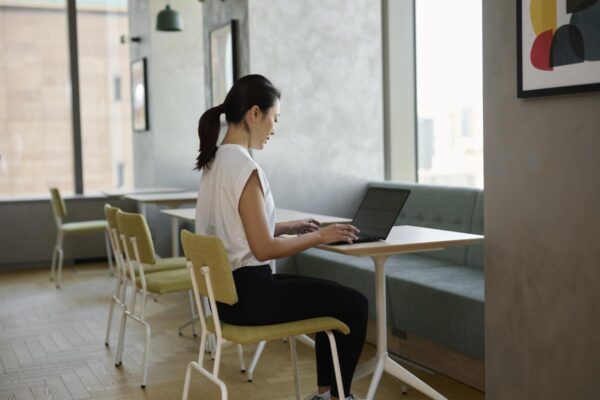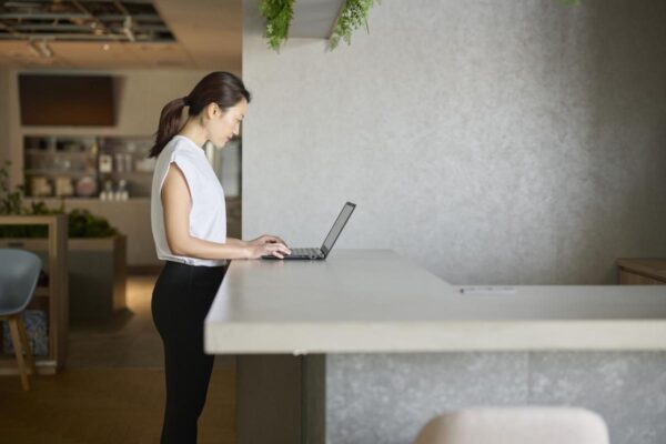▼きれいな姿勢で仕事をする風景