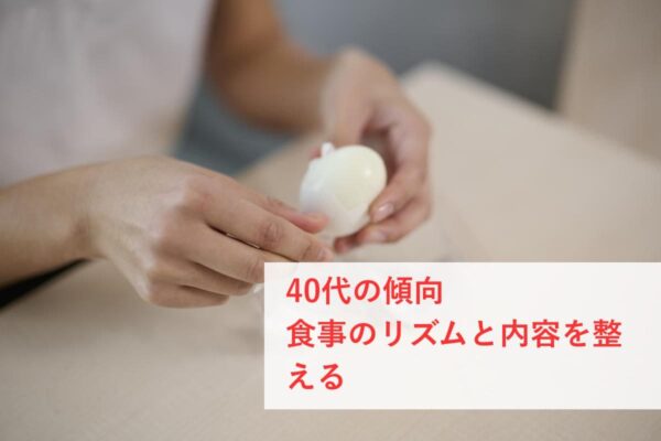 40代は、筋肉の量や基礎代謝が下がりやすく、同じ生活でも脂肪がつきやすくなる年代。20〜30代のころと同じ食事量・食べ方を続けていると「前より太りやすくなった」と感じやすい時期。
