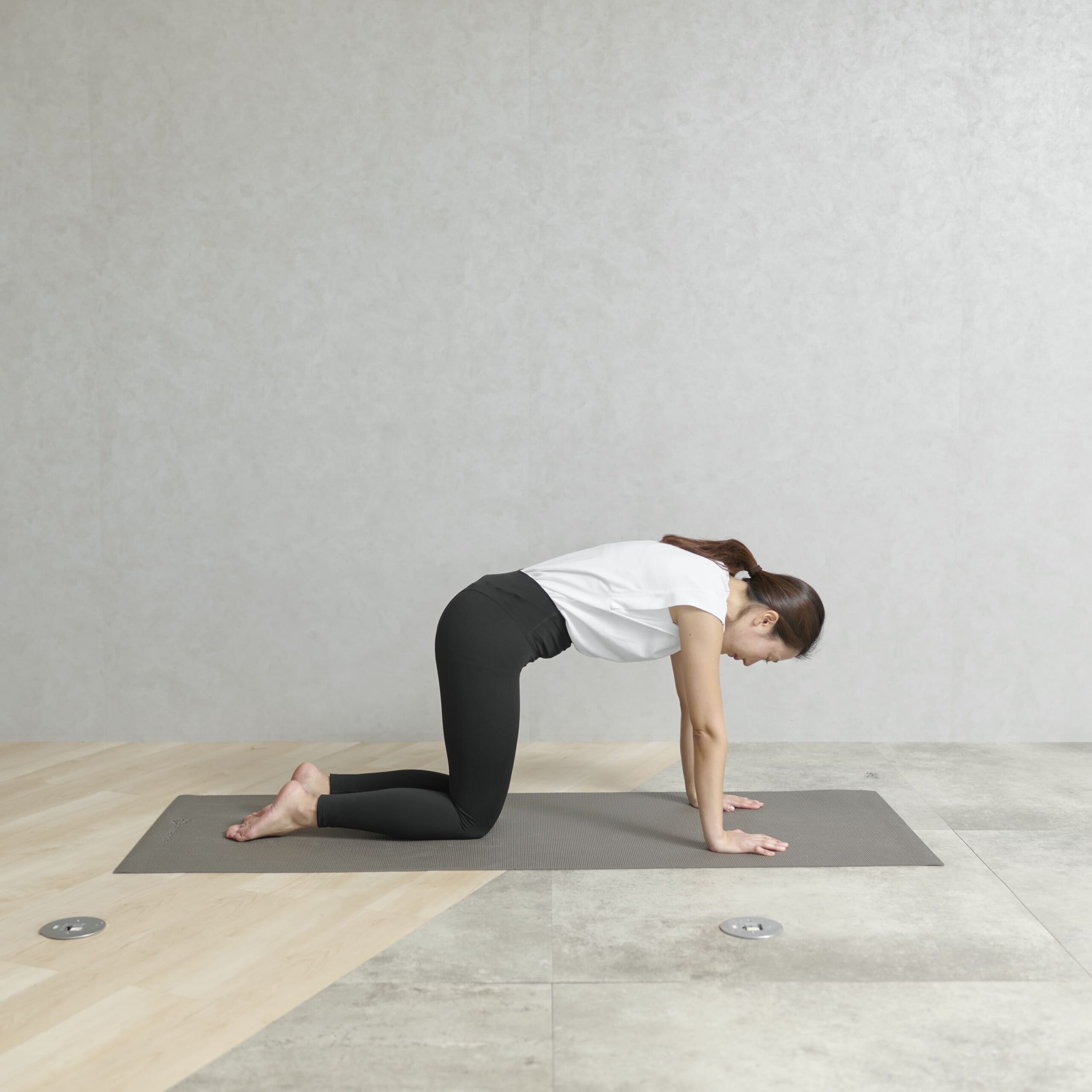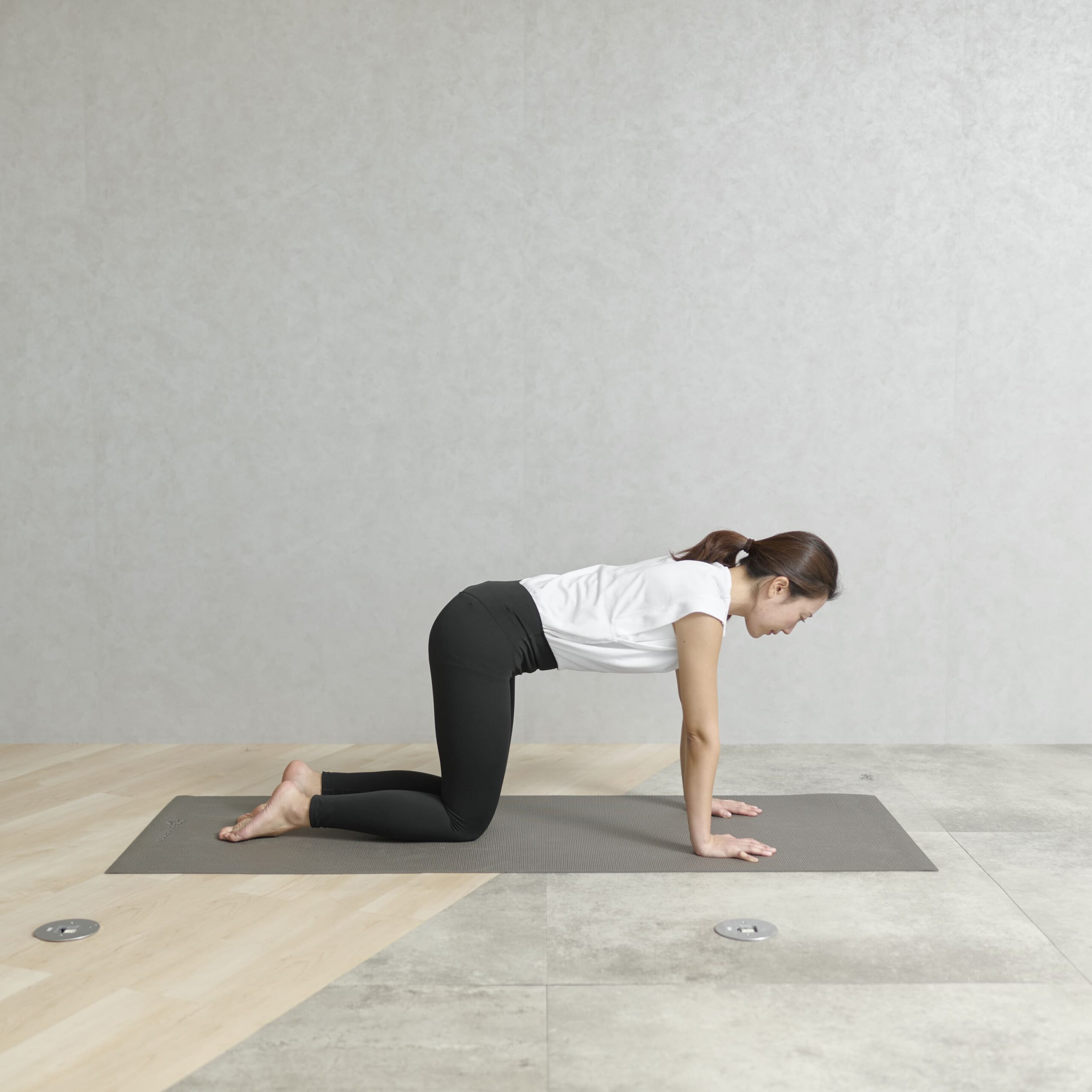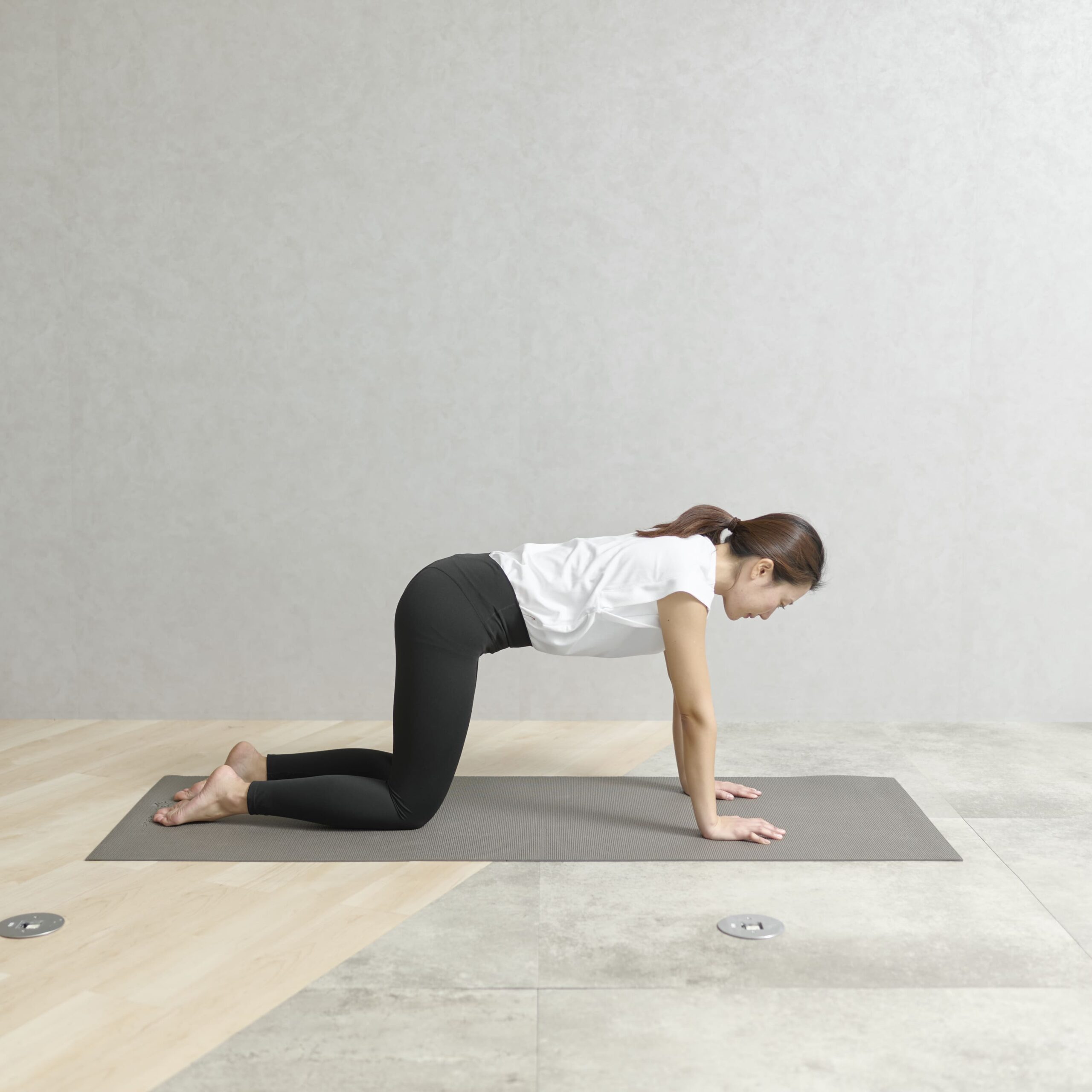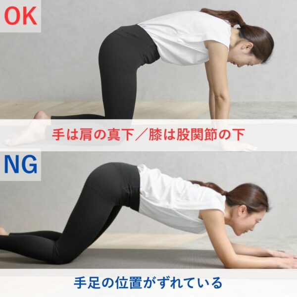 - 四つん這いになり、手は肩の真下、ひざは股関節の下に置く