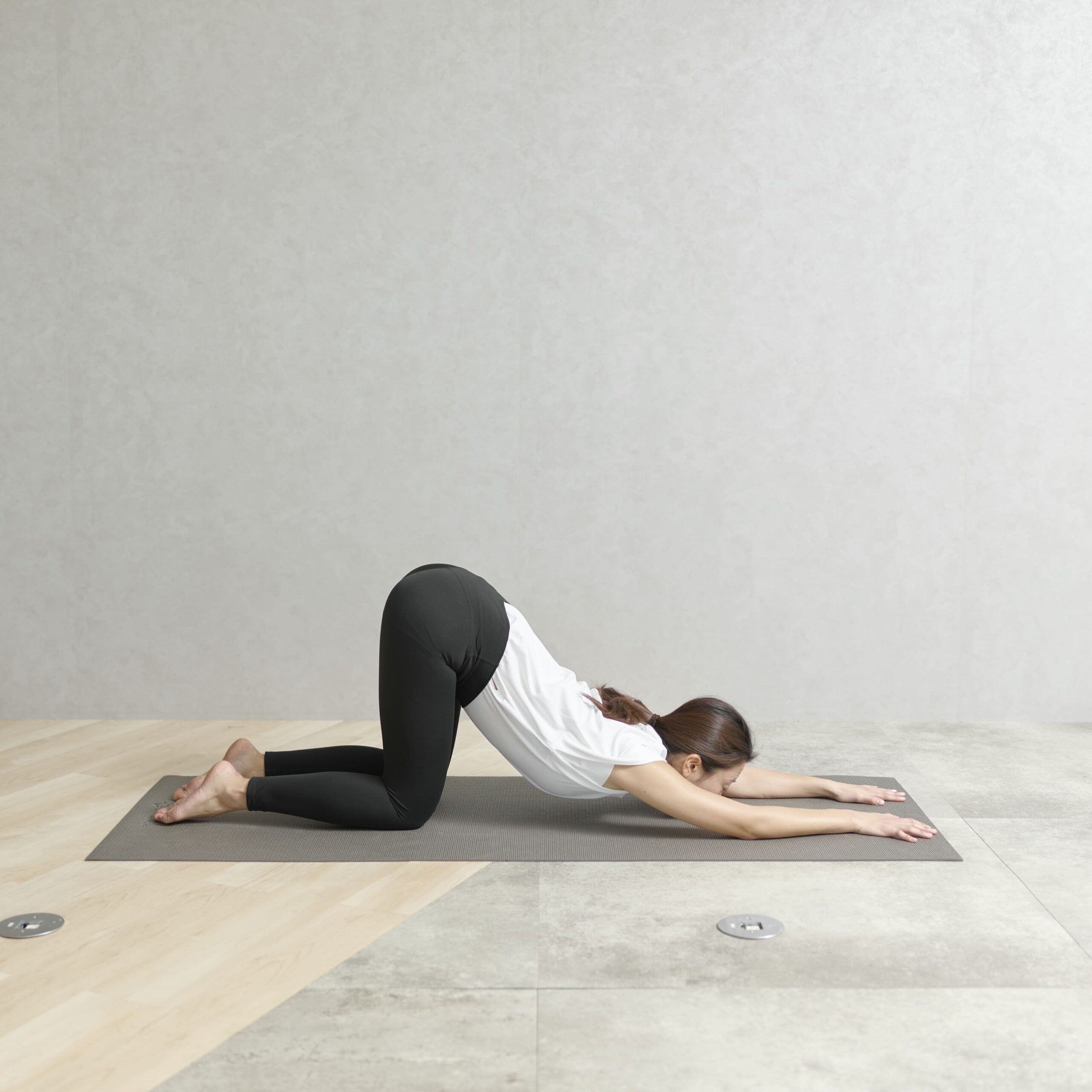 初めは短い秒数からポーズを取るなどして徐々に感覚に慣れていくことが大切です。「子犬のポーズ」や「壁を使ったダウンドッグ」など、頭が下がらないポーズから始めるのもおすすめです。