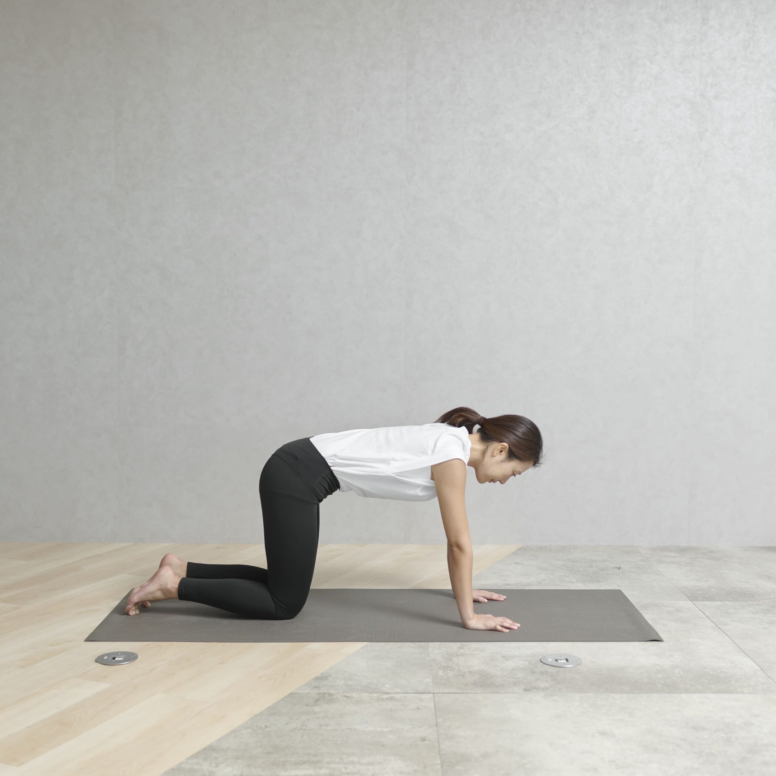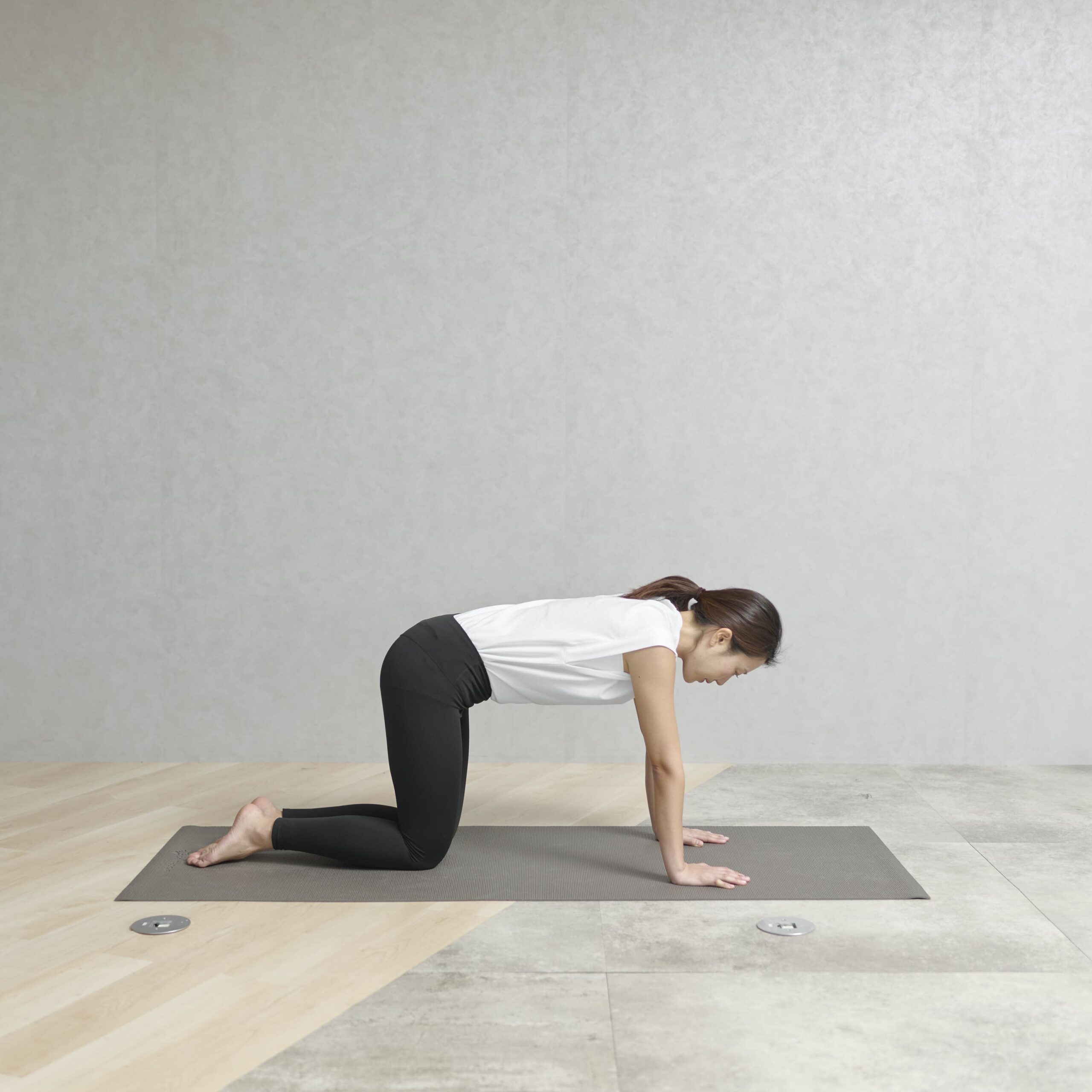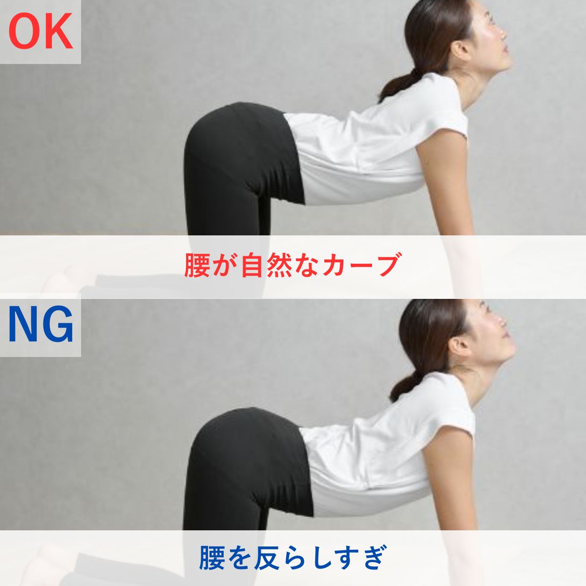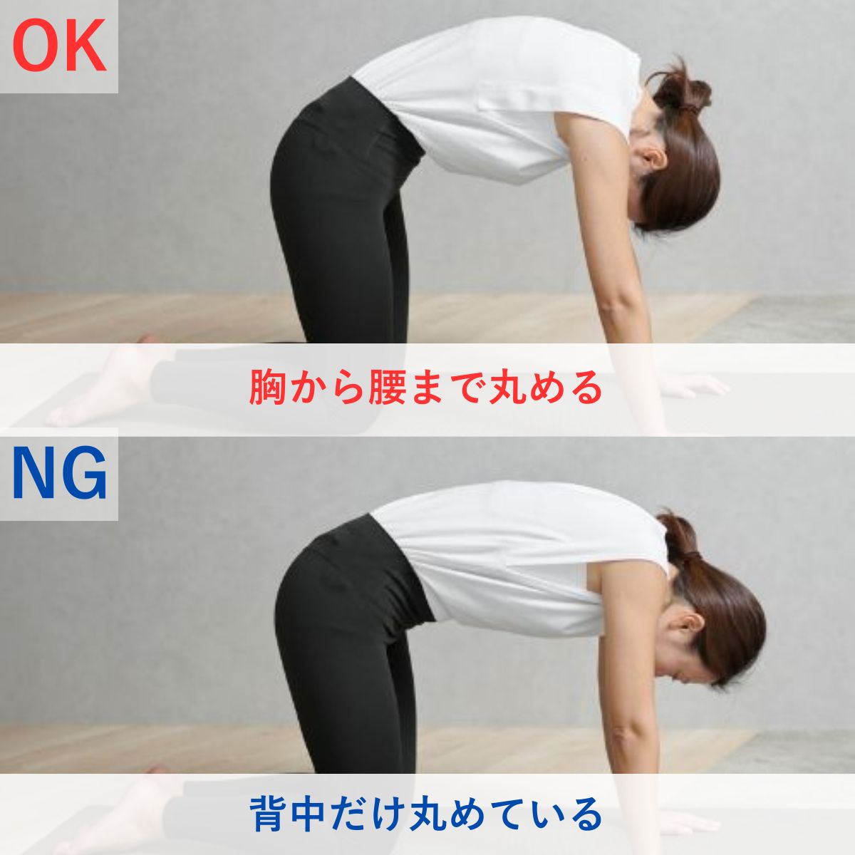 - 背中が綺麗なアーチになるように、胸、腰までしっかり丸める