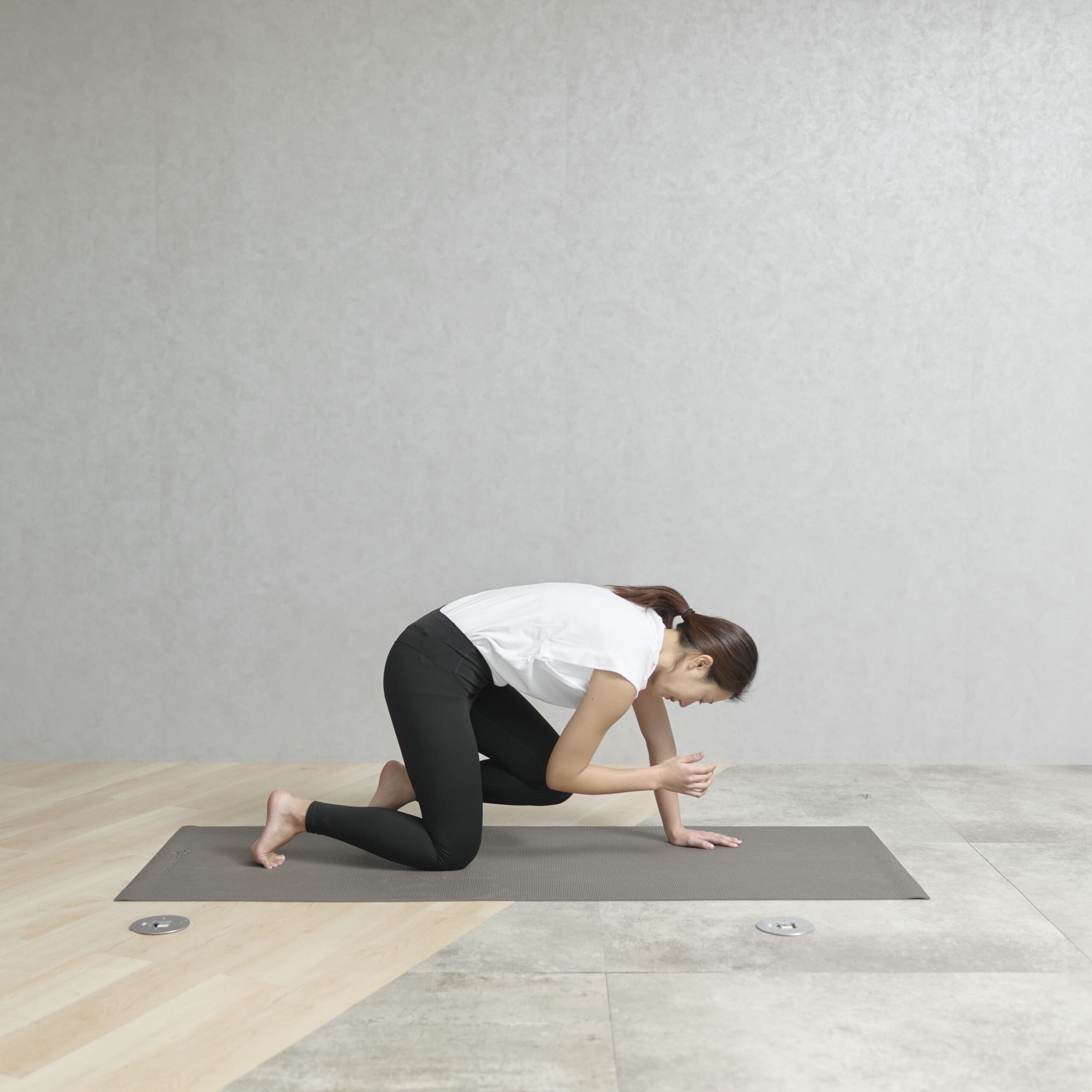 背中が綺麗なアーチになるように、胸、腰までしっかり丸める