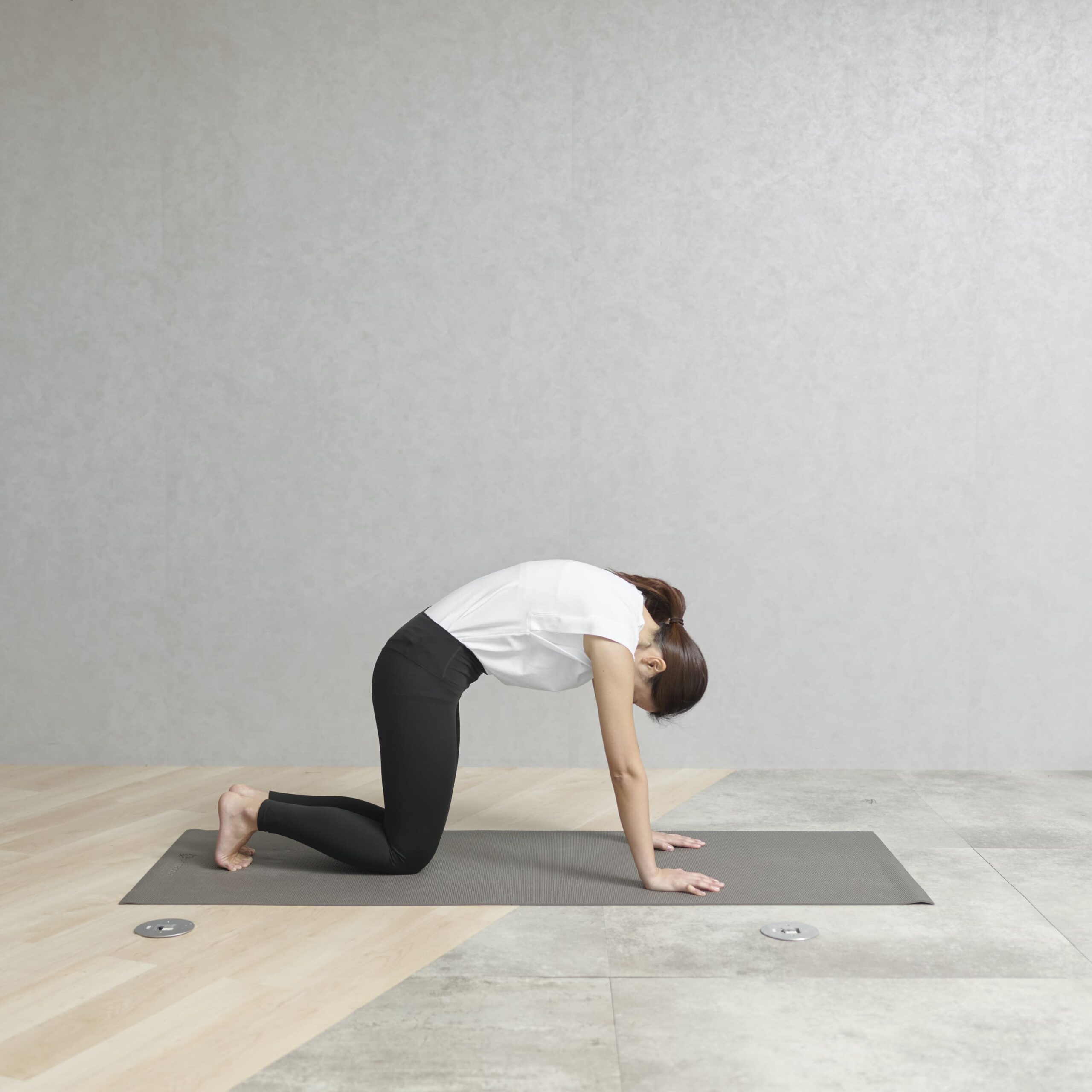 デスクワークやスマホ操作で凝り固まった体を、やさしくほぐしたい方におすすめなのが、ヨガの「猫のポーズと牛のポーズ(キャットアンドカウ)」。背中を丸めたり反らせたりと、呼吸に合わせて背骨を動かすシンプルな動きで、リラックス効果や姿勢改善、腰痛対策、腸の活性化などさまざまなメリットが期待できる。