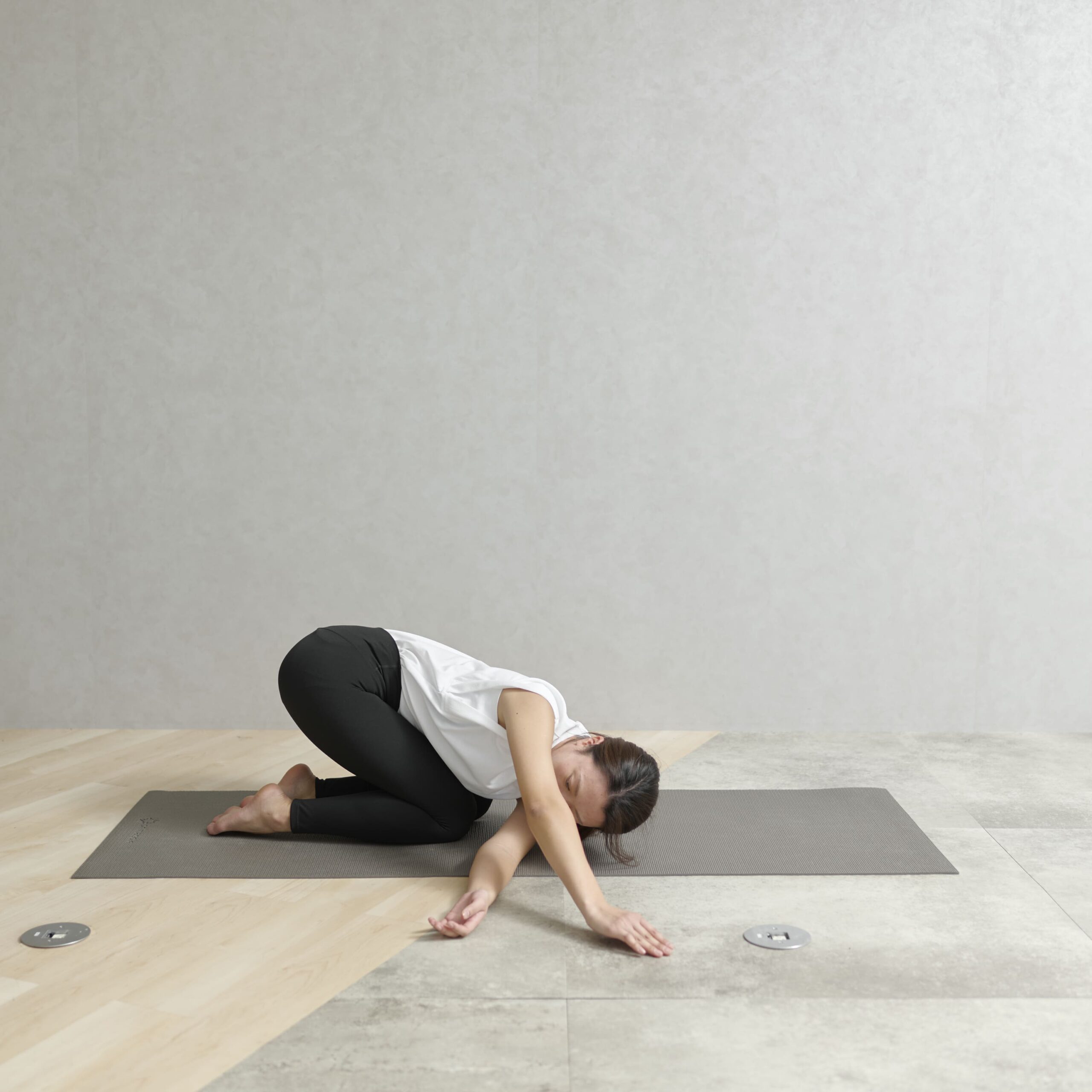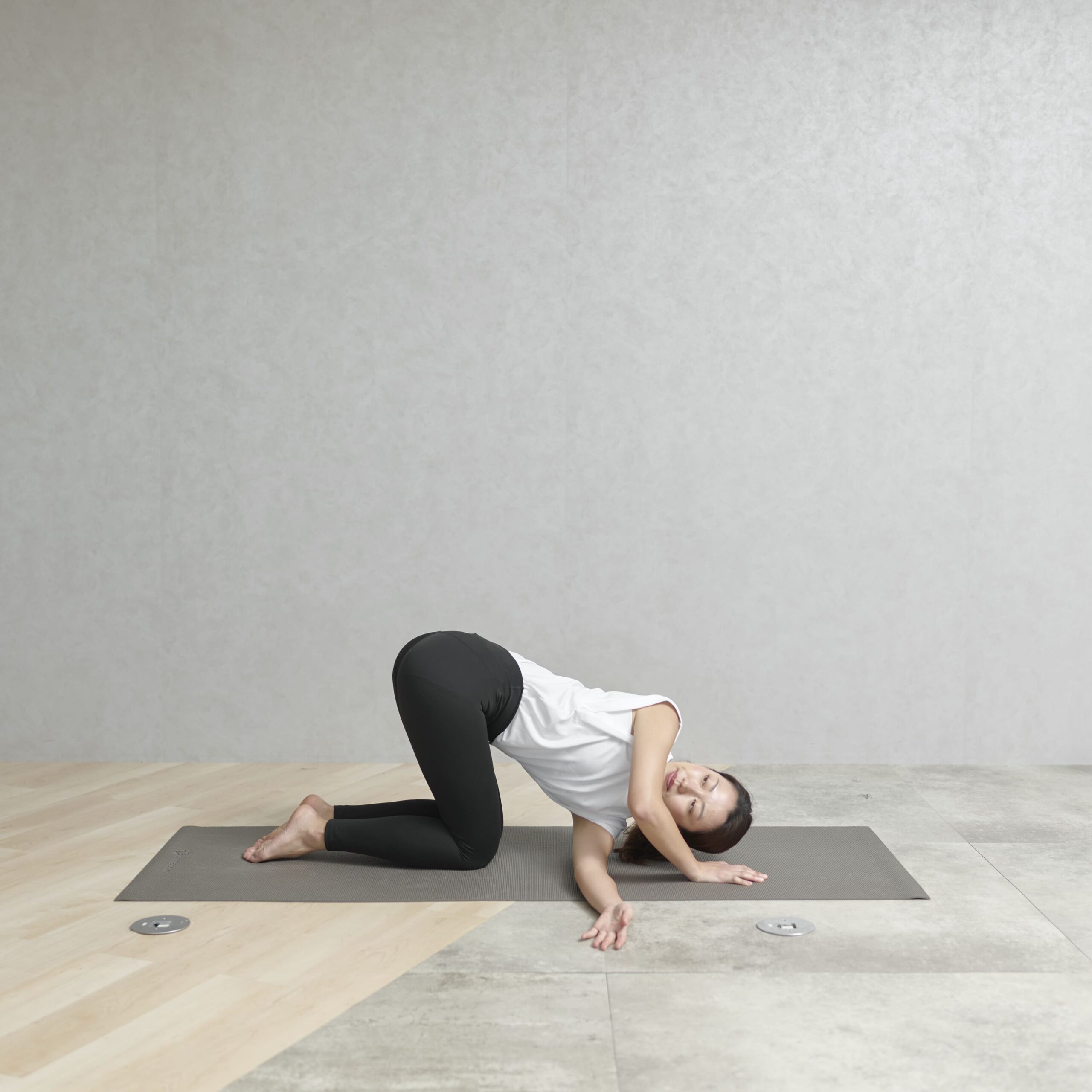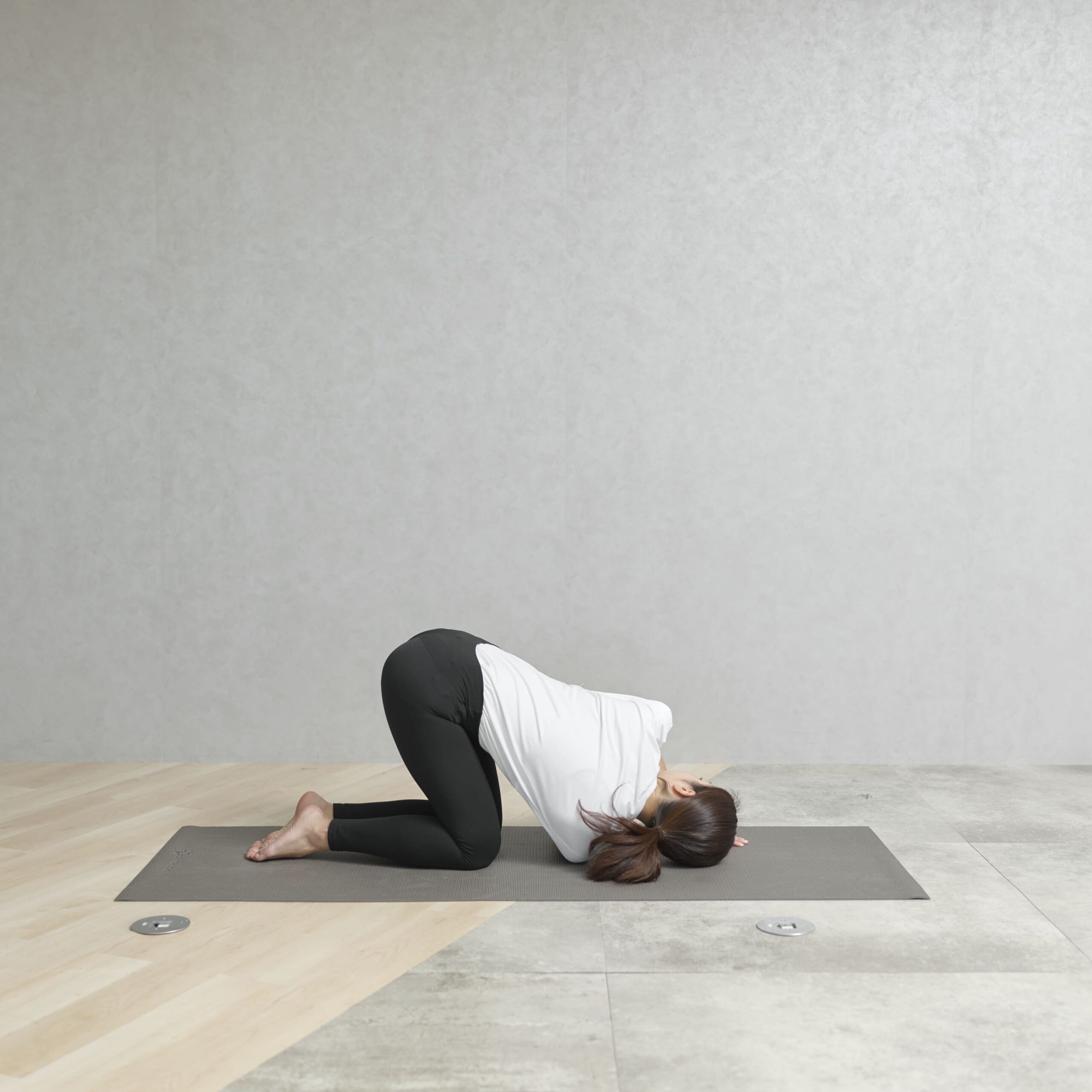 キャットポーズとカウポーズをゆっくり繰り返すことで、なめらかに背骨全体を動かすことできました。ポーズに合わせた深い呼吸で、心身ともにリラックス効果も得られました。