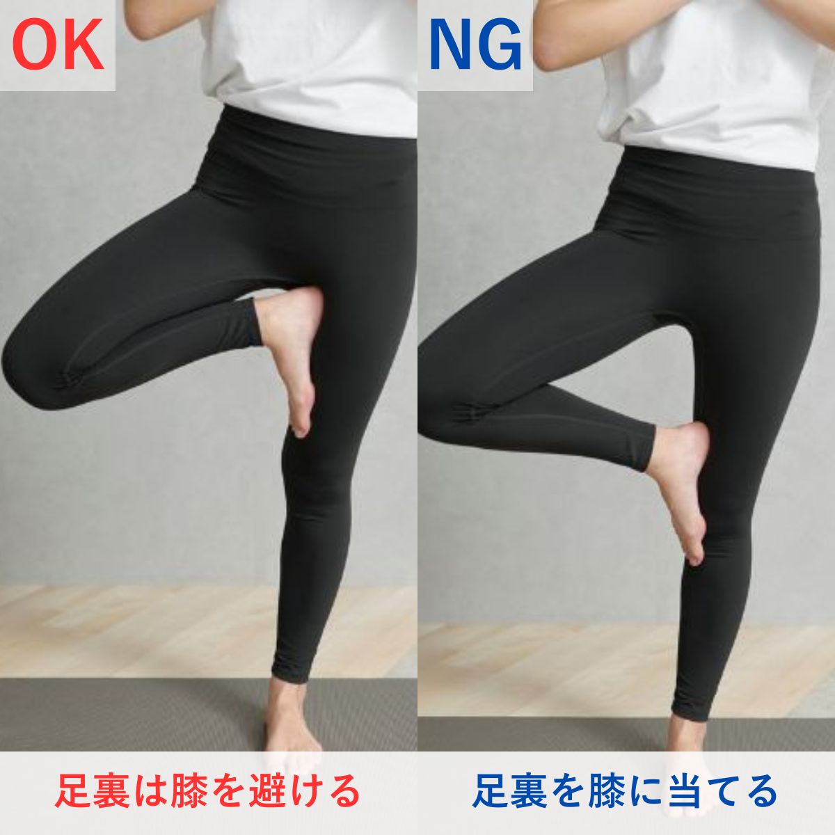- 片足を反対側のふくらはぎ or 太ももへ(※膝の横は避ける)あてる