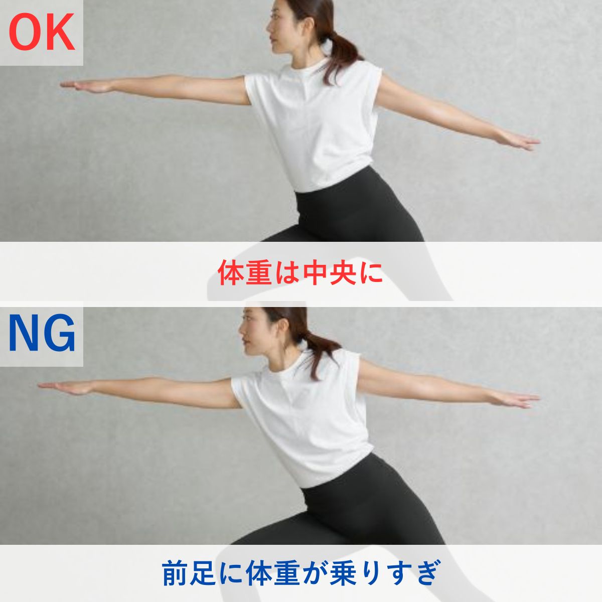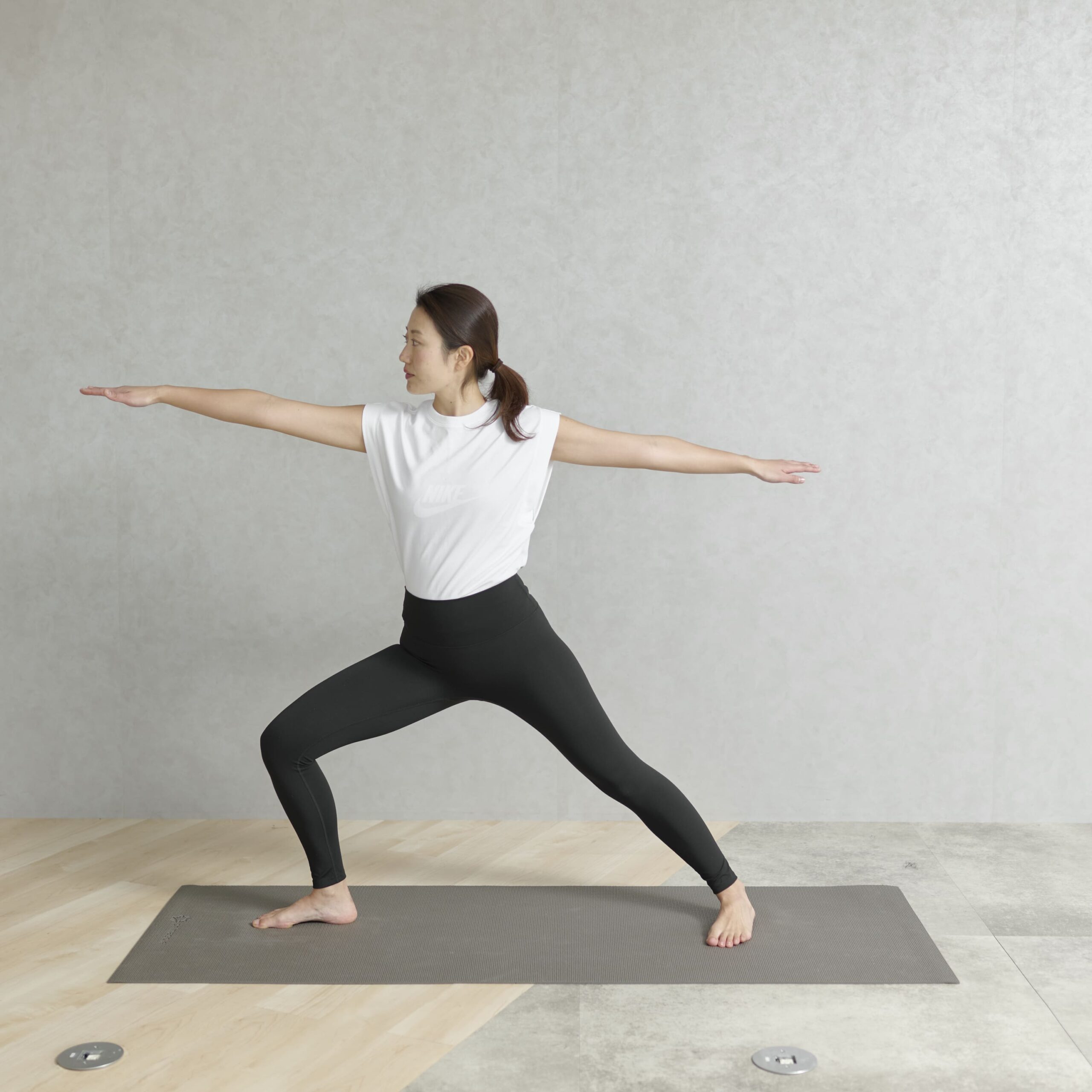 戦士のポーズは太ももとお尻を使い、股関節の外旋(外側へねじる動き)が入ります。脚のラインが気になっている人にもおすすめです。