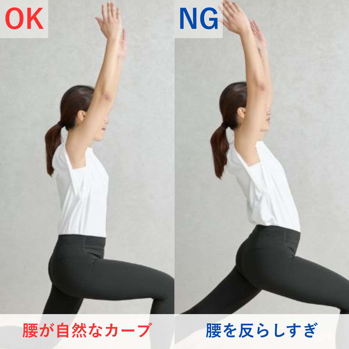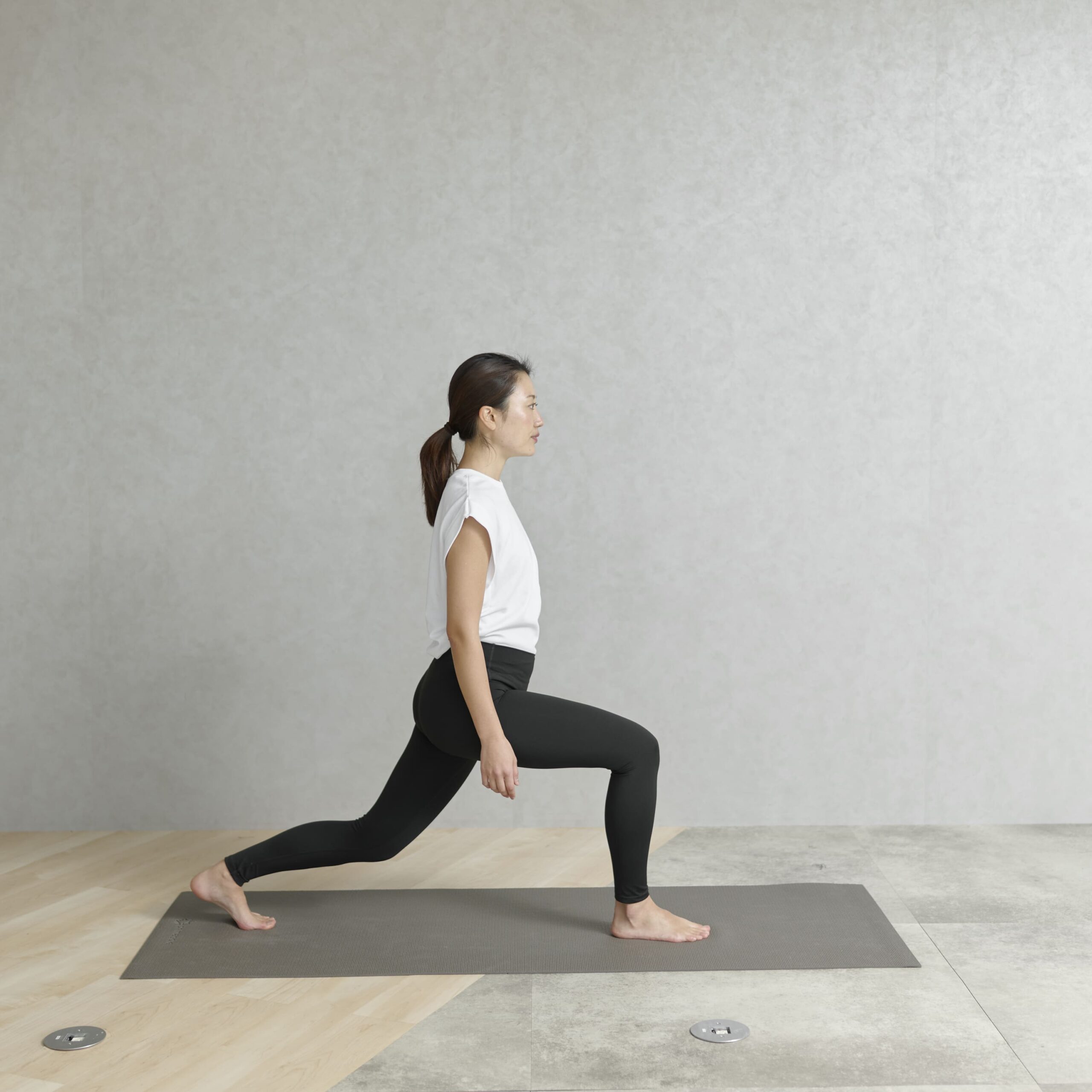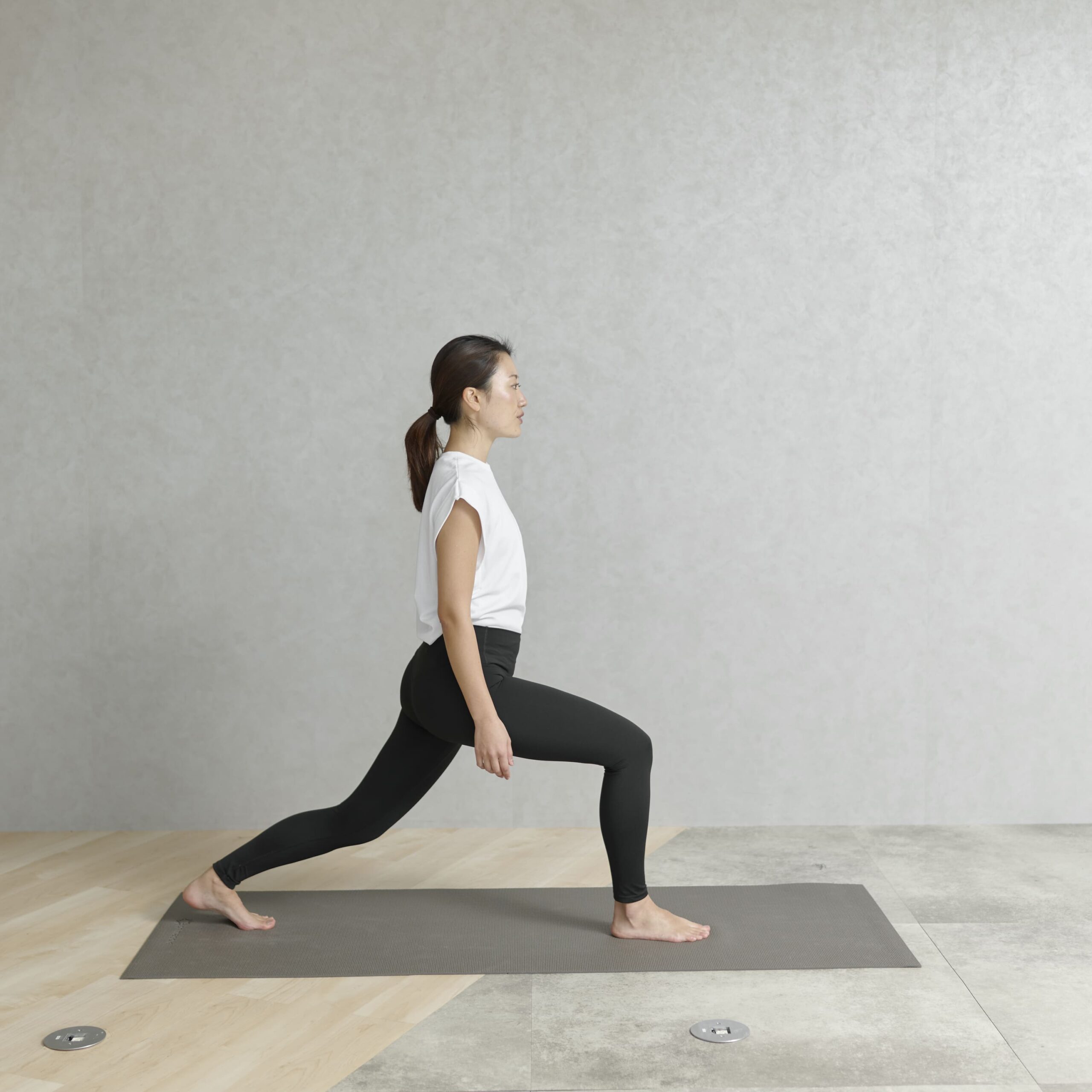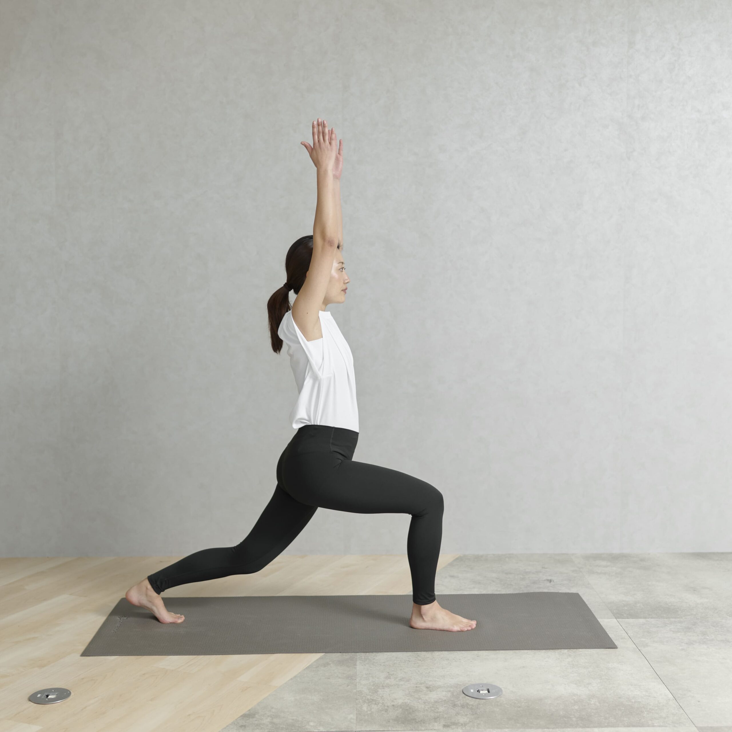 ハイランジは腕を上に上げていくため全身を使い、さらに気持ちも前向きになりスッキリしやすいポーズです。ふくらはぎも伸びるため、足のむくみにも効果的です。1日の終わりに全身スッキリしたい人におすすめです。