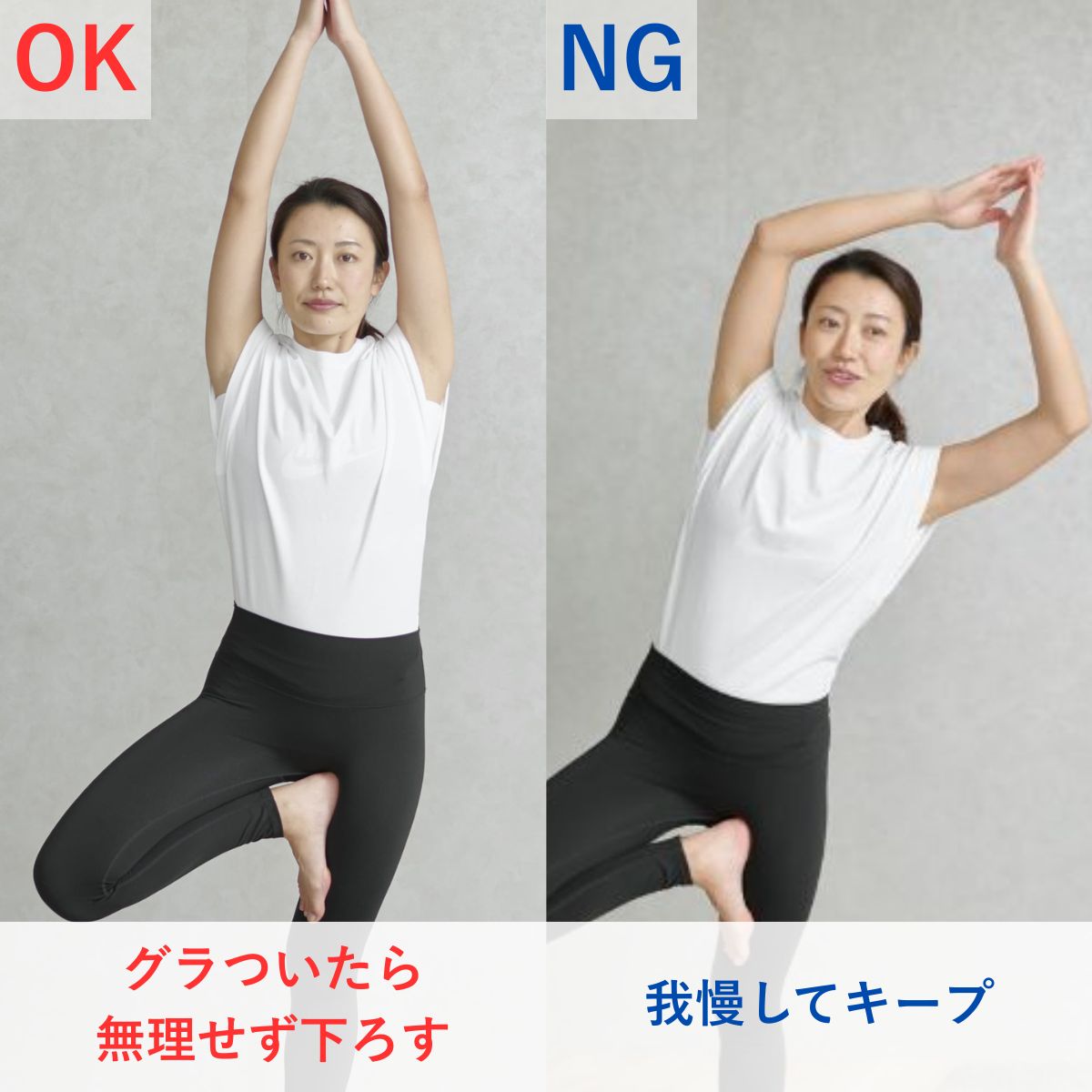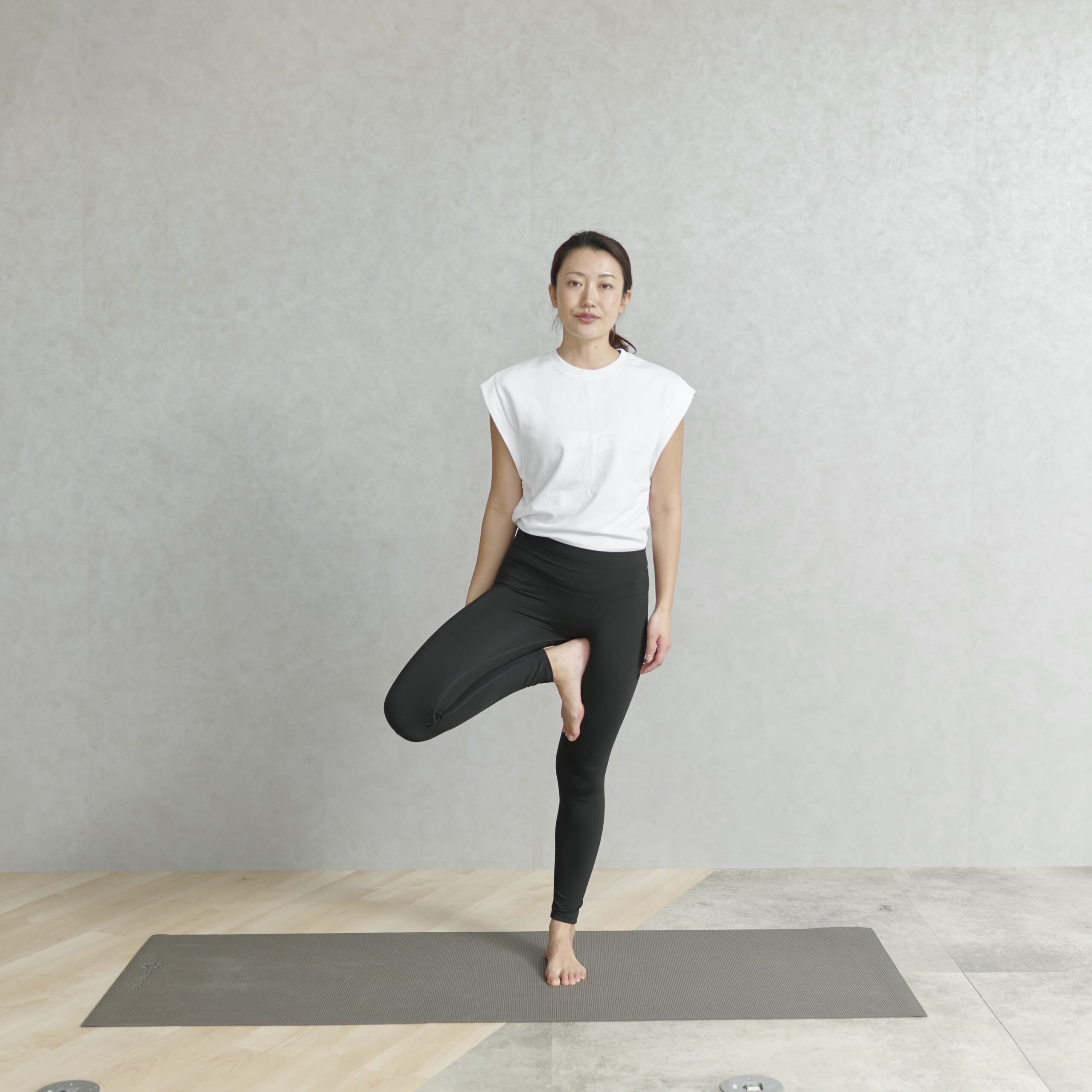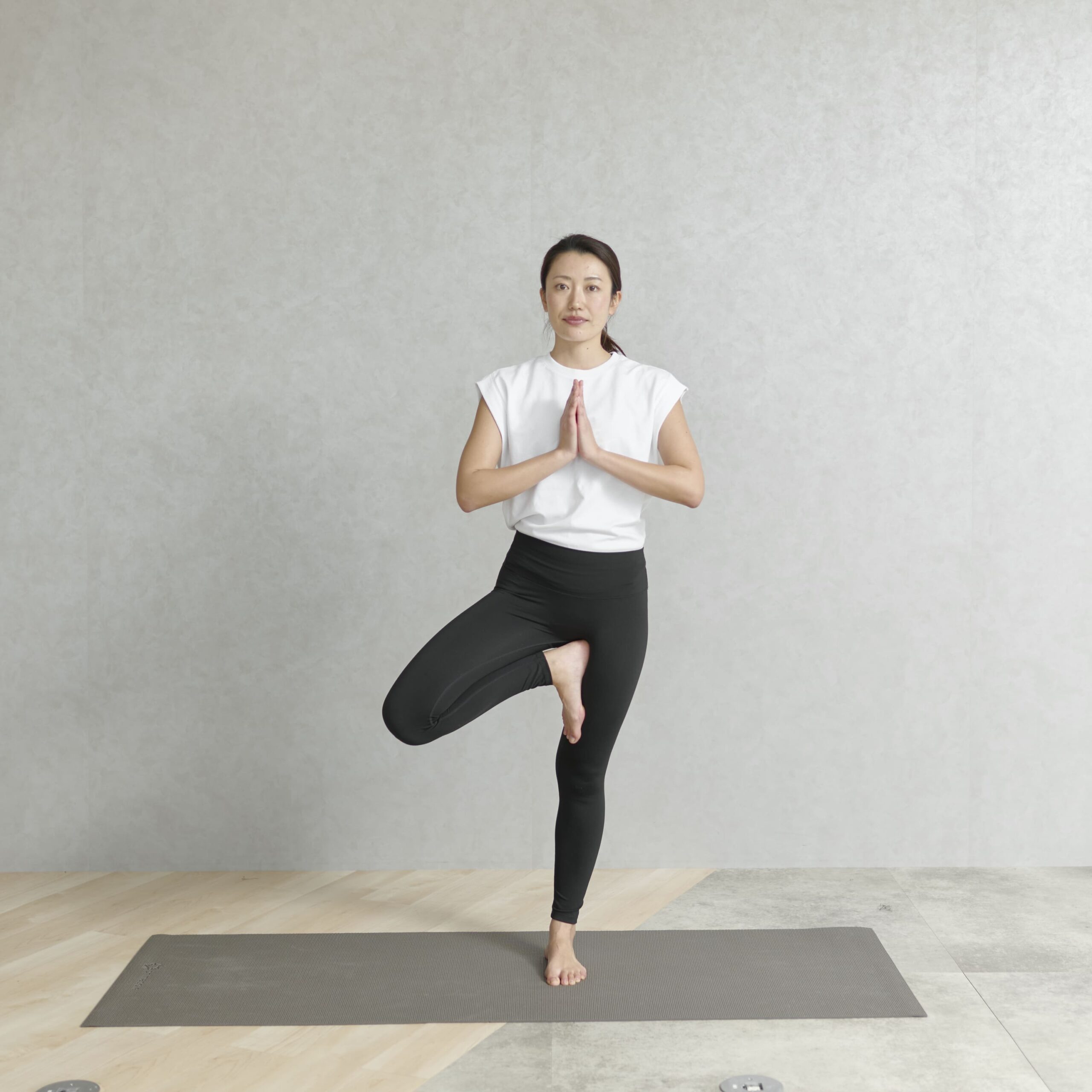 きき脚ではない方の脚でポーズするのは、とくにフラフラしがちになり難しかったです…!「立木のポーズ」という名前の通り、真下に根っこが生えているように、幹となっている足の裏で地面をしっかりと押すことが大切でした。