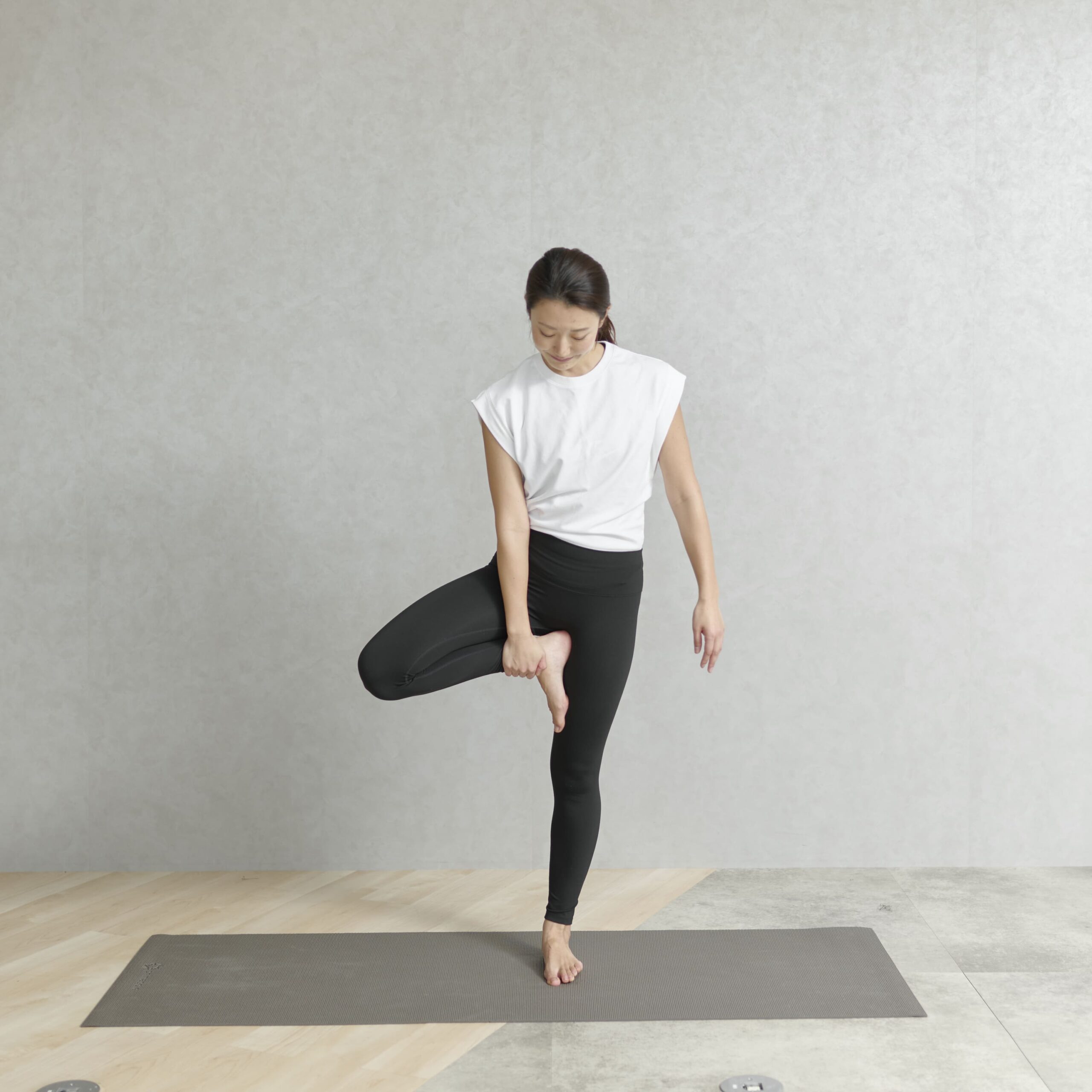 立木のポーズも、太ももとお尻をメインで使っていくポーズです。大きな筋肉を使うため代謝が上がりやすいのが特徴です。片足立ちになるため不安定な要素があり、集中力や体幹も鍛えられます。