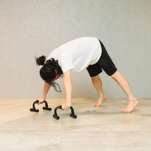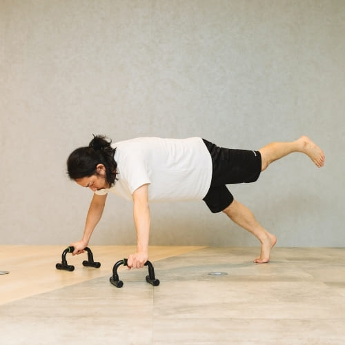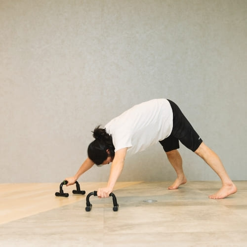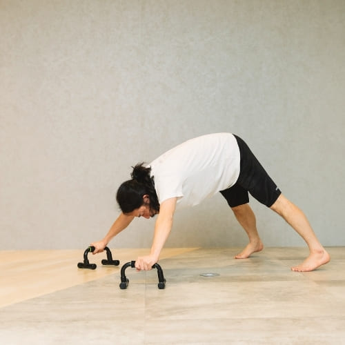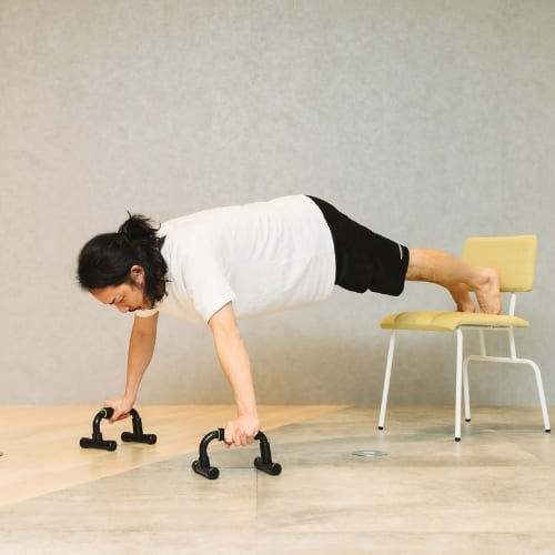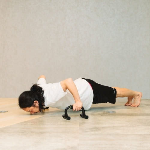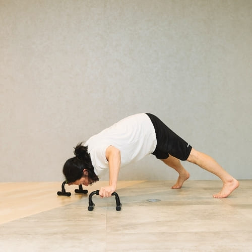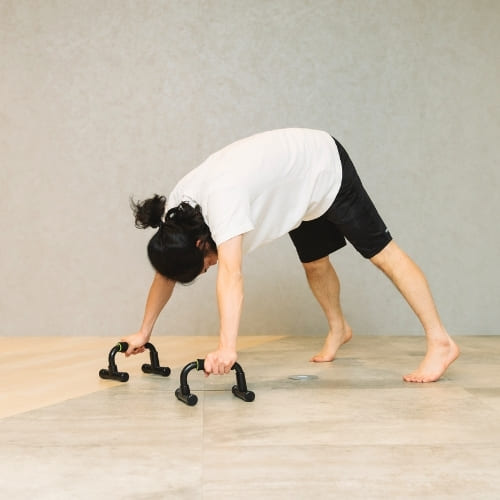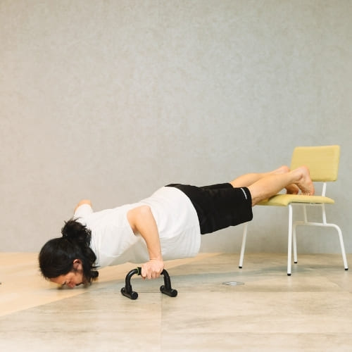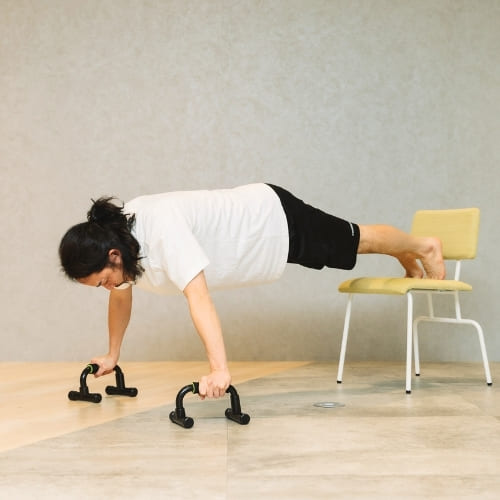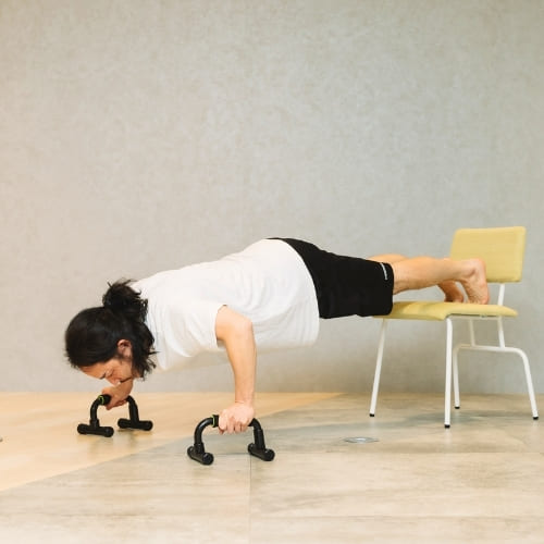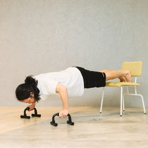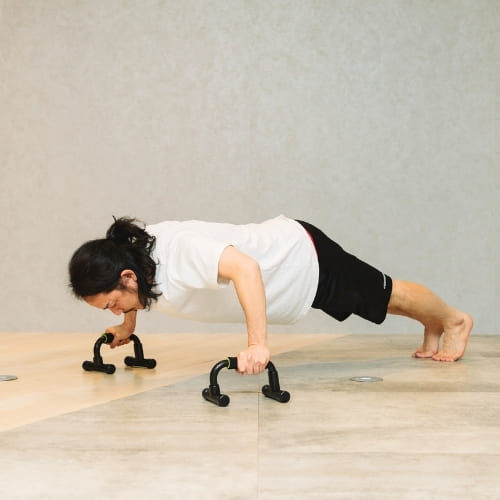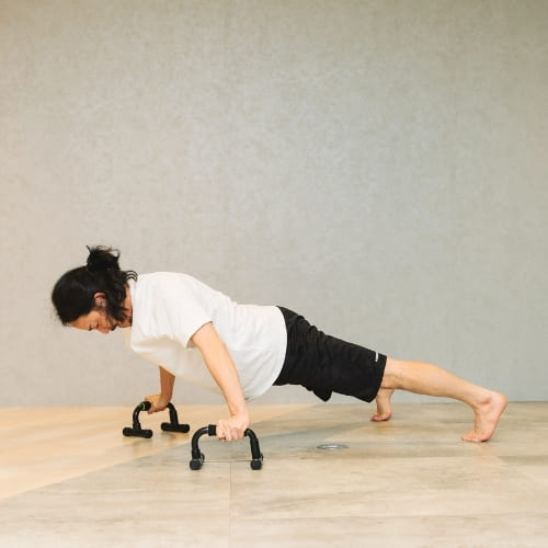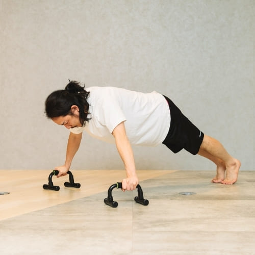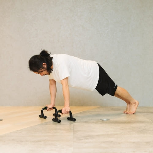 - 肩幅より少し広くして、プッシュアップバーを握る