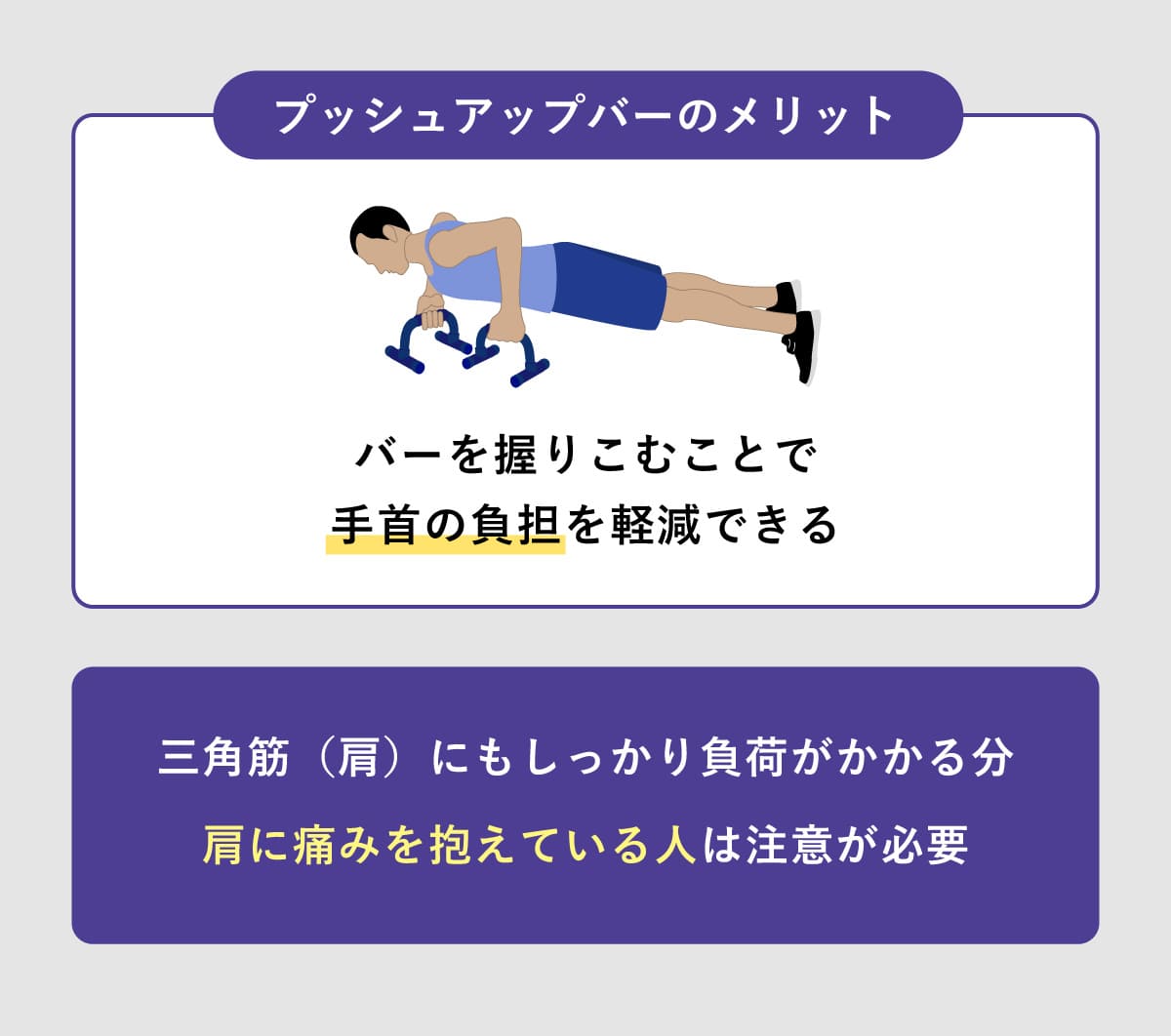 ただし、もともと手首に痛みがある場合は、プッシュアップバーを使ってもある程度の痛みは生じてしまう。