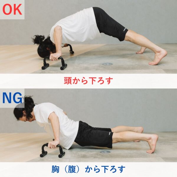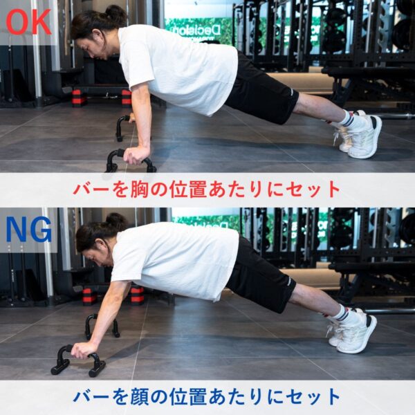 - NG:プッシュアップバーを顔の位置あたりにセット