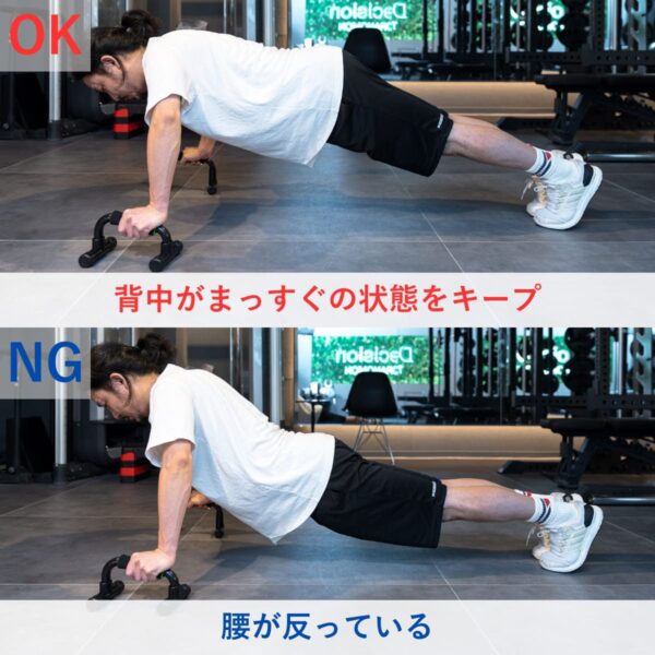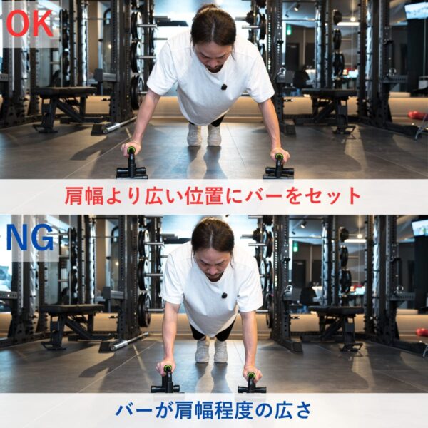 - OK:プッシュアップバーを胸の位置あたりにセット