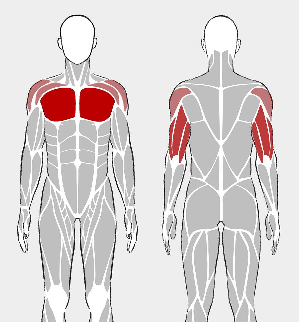 また、三角筋(肩)にもしっかり負荷がかかる分、肩に痛みを抱えている人は注意が必要。