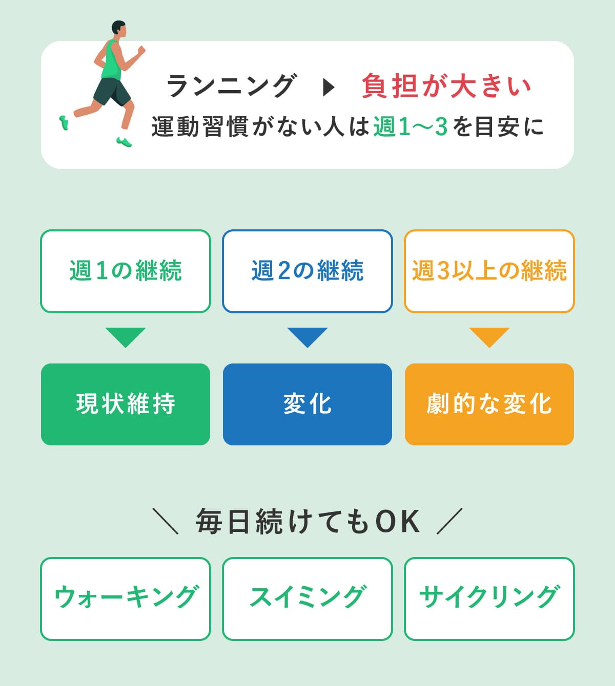 - 毎日のランニングは避ける