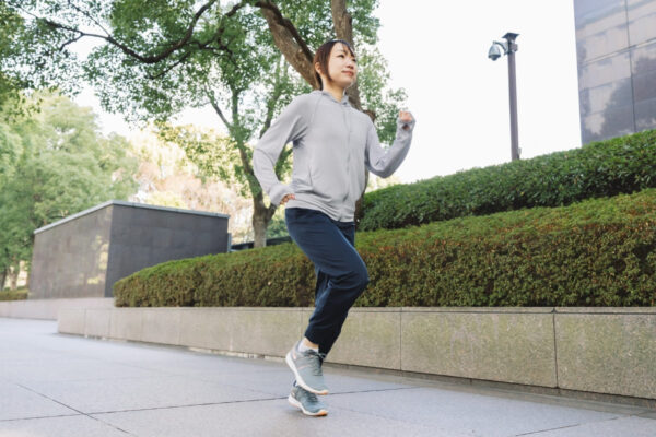 ストレッチやスイッチと組み合わせることで、普段の通勤や通学、買い物の移動も効果的な運動になる。ランニングより負担も少ないため、ウォーキングやスロージョギングと組み合わせて毎日おこなうと、より効果的。