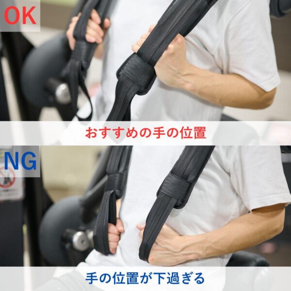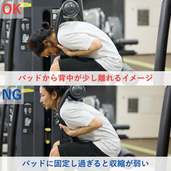 - 屈曲時は背中のパッドから少し離れる方が腹筋に効きやすい