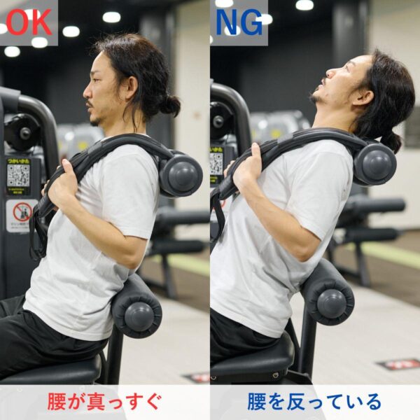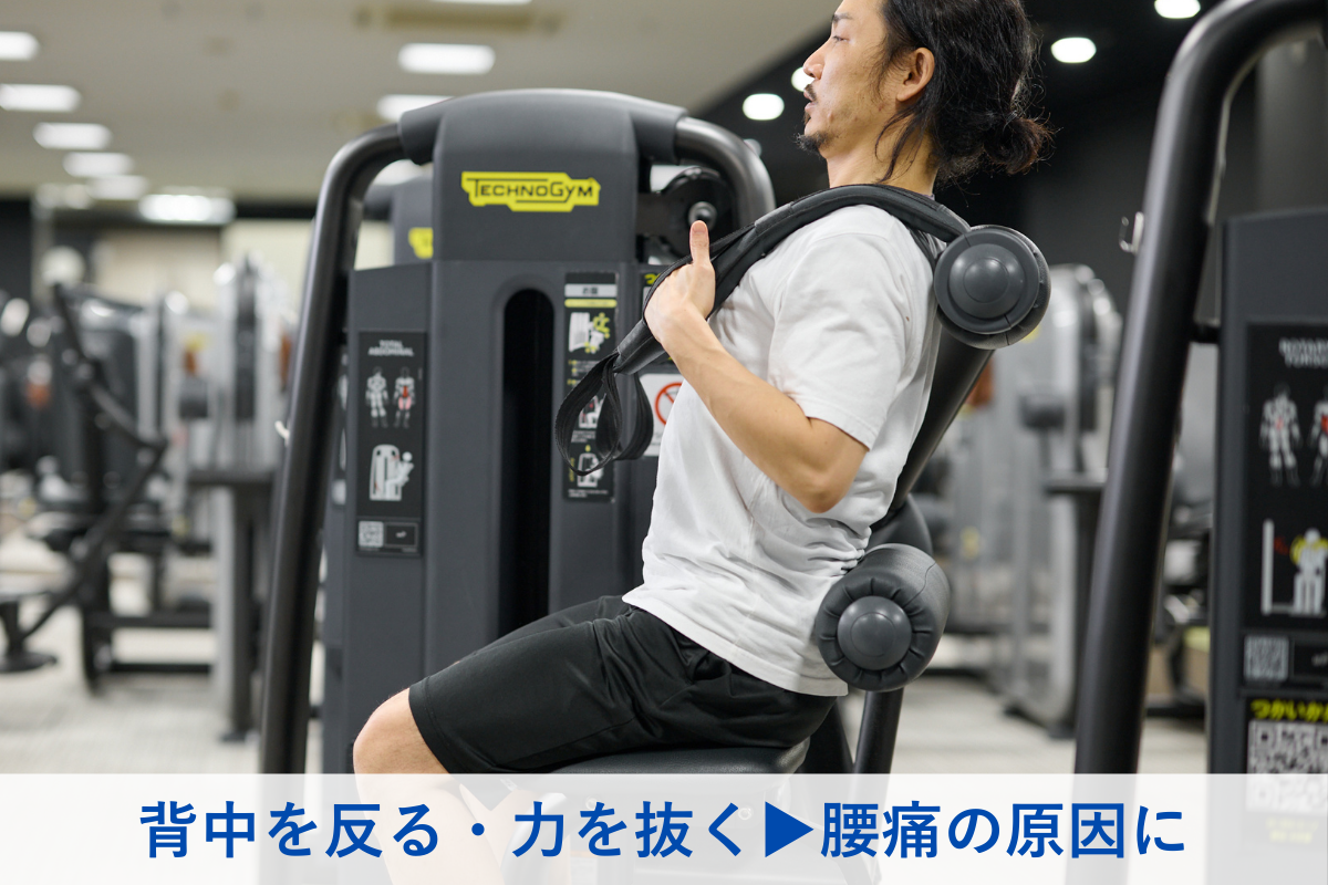 - 腰を反らさず上体を戻す