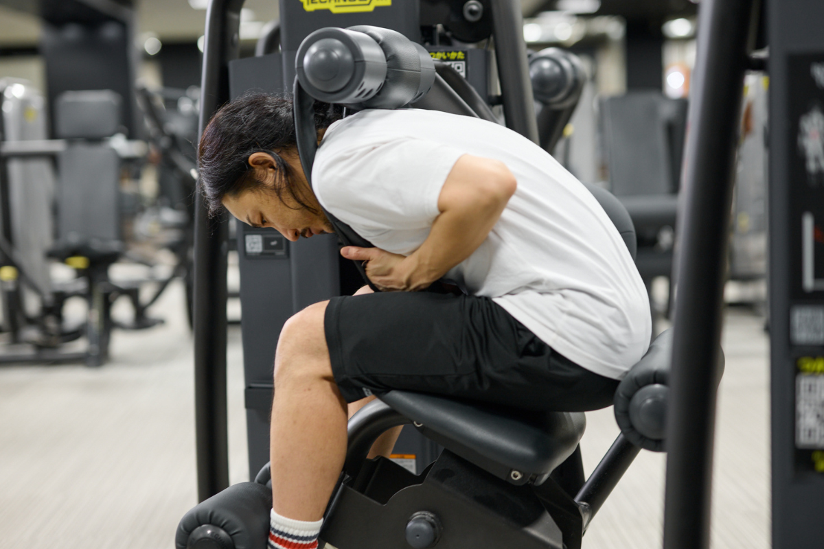 アブドミナルクランチマシンで腕が先に疲れてしまう人は、先に自重トレーニングで体のコントロールを身につけてからマシンを使うのがおすすめです。