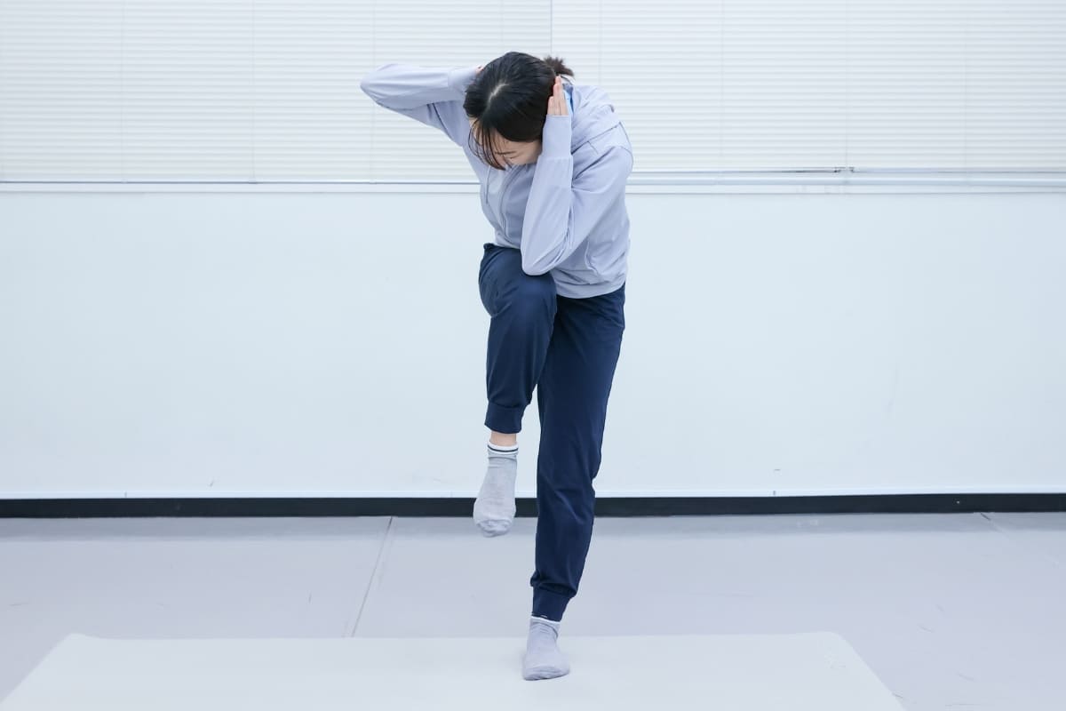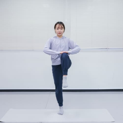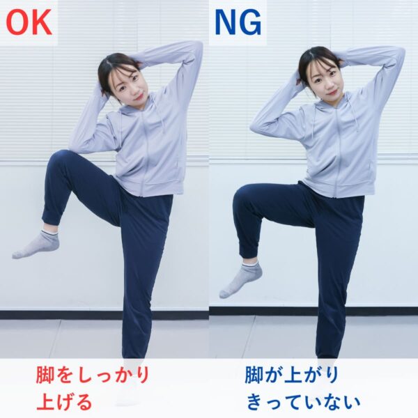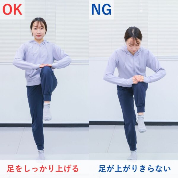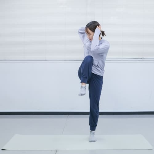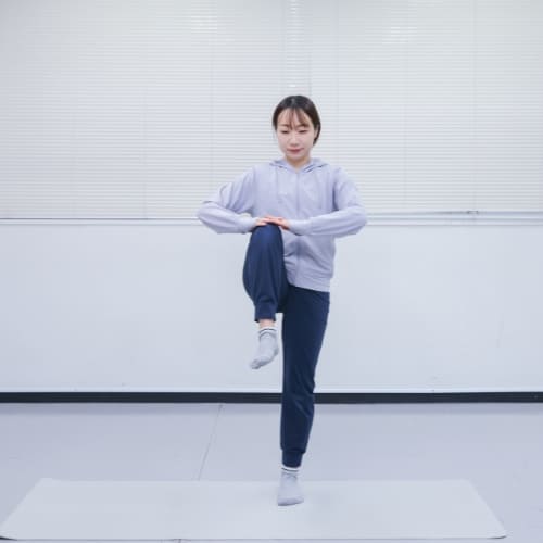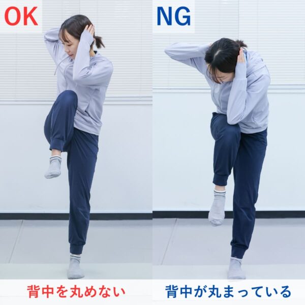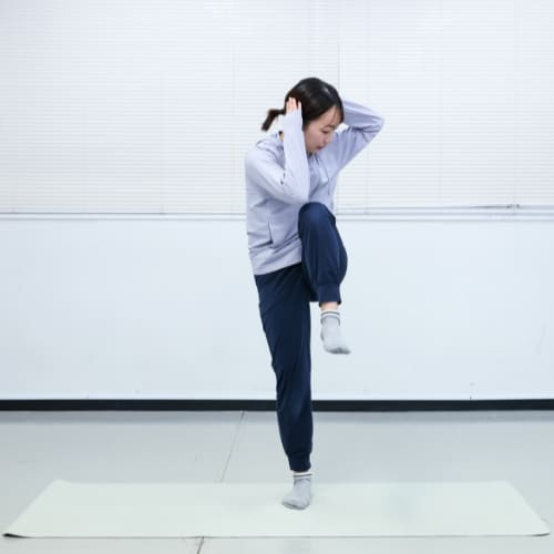 - 片膝を腰の高さまで引き上げる