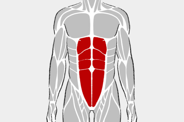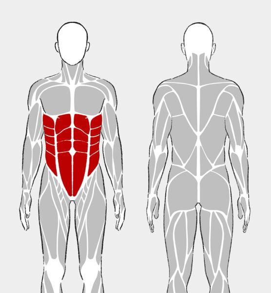 腹直筋はお腹の正面にある筋肉で、上体を丸める動作に関わる。