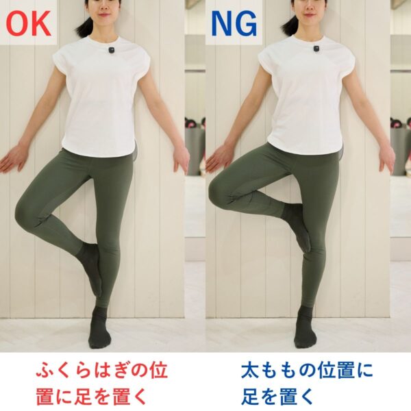 - 持ち上げる足はふくらはぎの位置に置く
