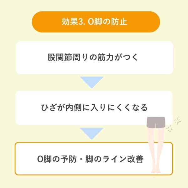筋力低下が要因となる機能的O脚の予防・脚のライン改善に対するアプローチとして一定の効果が期待できる。