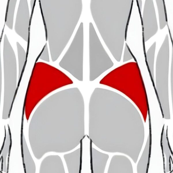 中殿筋はお尻の外側に位置する筋肉で、股関節を外側へ開く動作(外転)を担う。クラムシェルではひざを開く動作で中殿筋が働きやすく、骨盤を安定させながら脚を動かす役割を果たす。